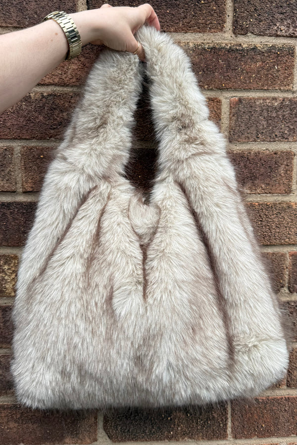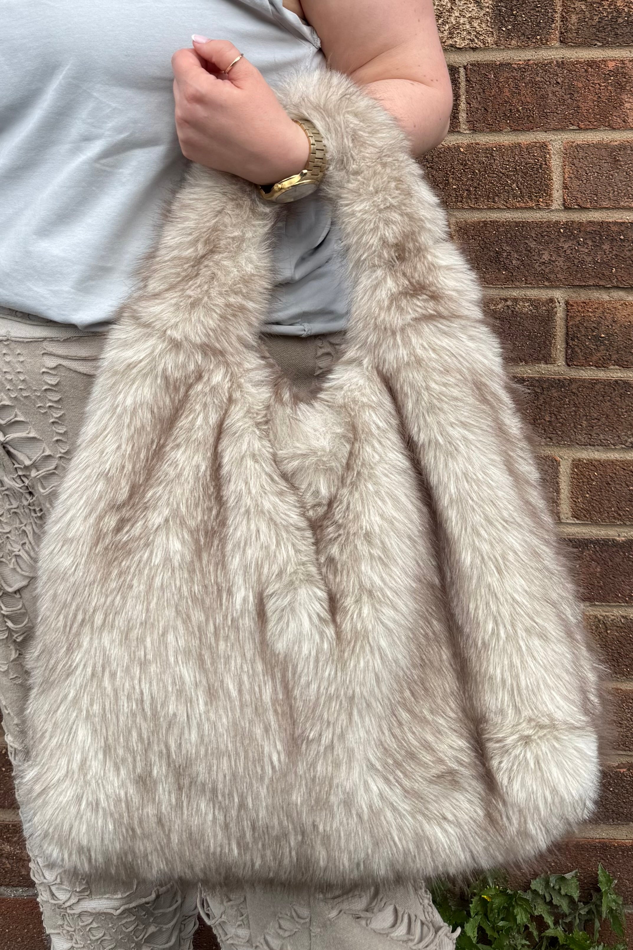 This bag isn’t just an accessory - it’s the answer to so many style dilemmas. Made from plush faux fur with a sleek, deep beige and taupe sheen, it’s soft, lightweight, and effortlessly chic.