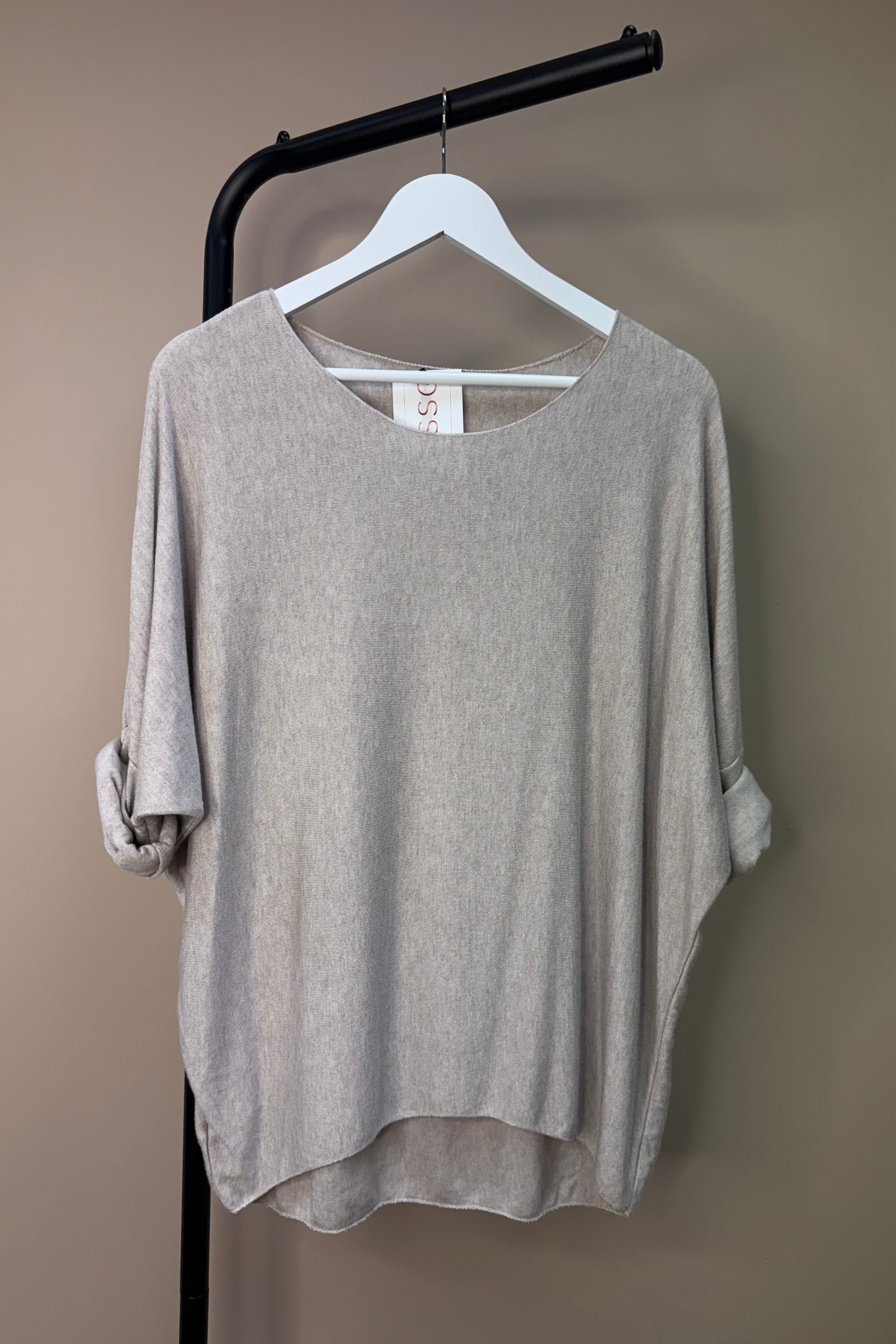Enjoy ultimate comfort with the Beige Soft Knit Jumper, a lightweight layer perfect for any mood. Its fine knit fabric feels delightfully soft, while the longer back adds a trendy twist. Roll up the sleeves for a fun, casual vibe or let them down for a cozy, relaxed feel—this jumper adapts to your style effortlessly.