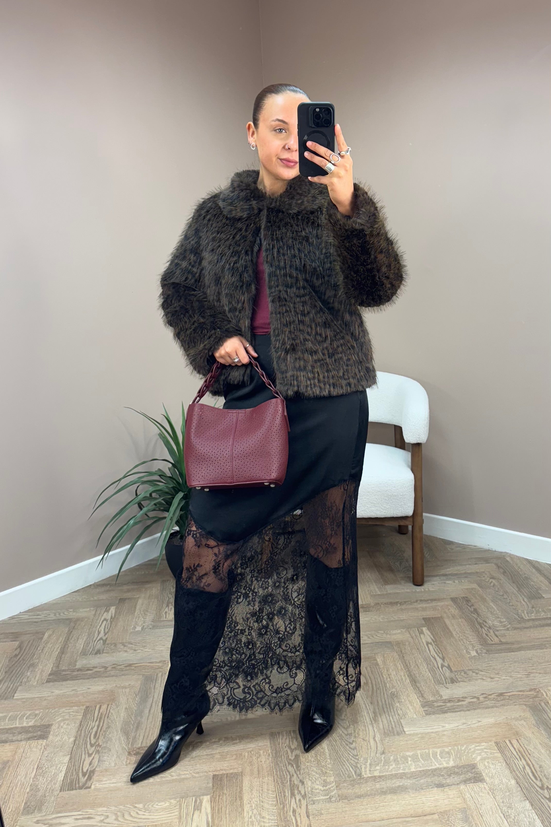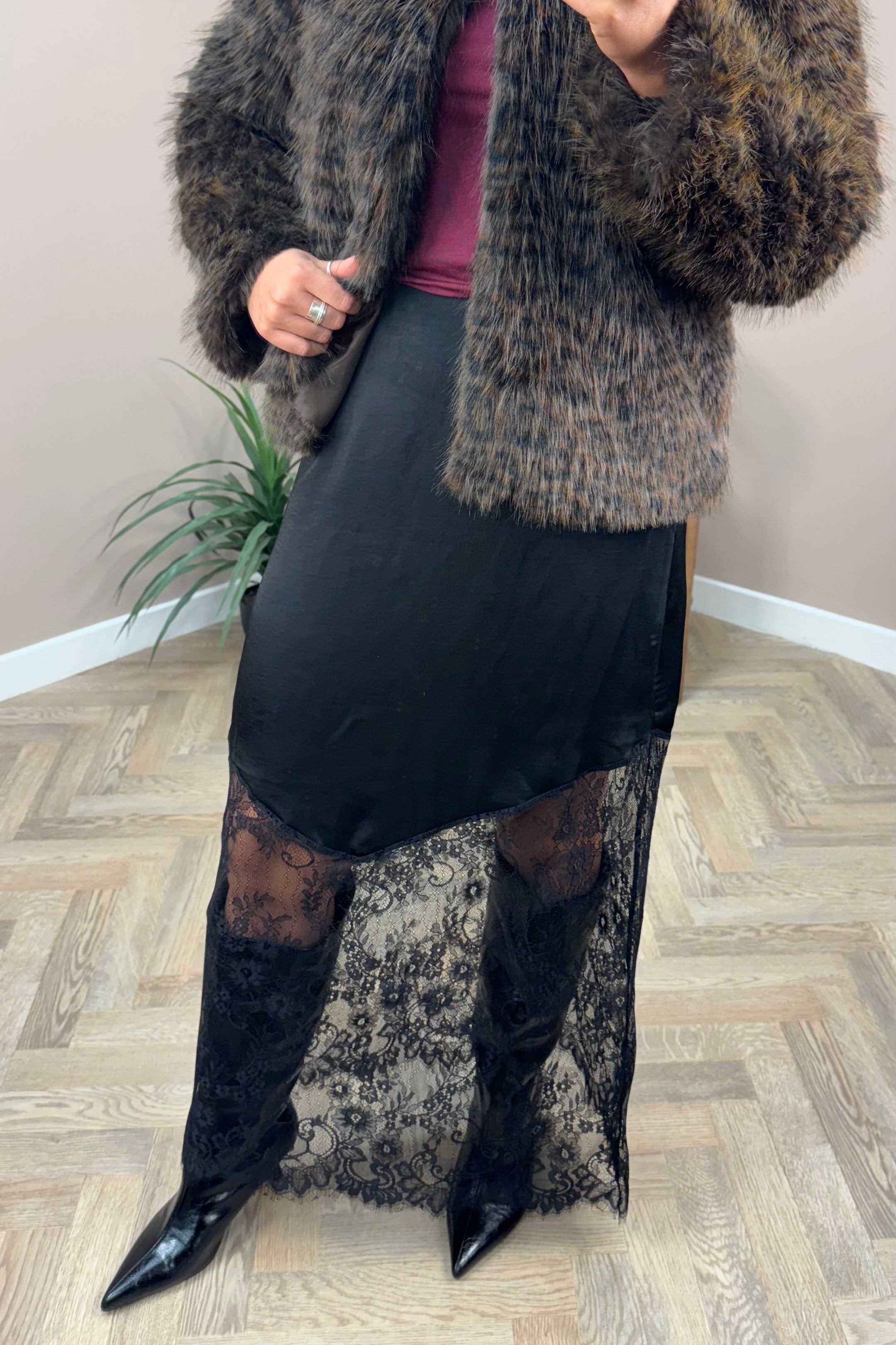 Elevate your wardrobe with this Lace Trim Satin Skirt, expertly designed to flatter every silhouette. The smooth satin fabric drapes elegantly, while the delicate lace trim adds a refined, feminine touch. Its trendy cut ensures a modern yet timeless look, making it perfect for both day and evening wear.