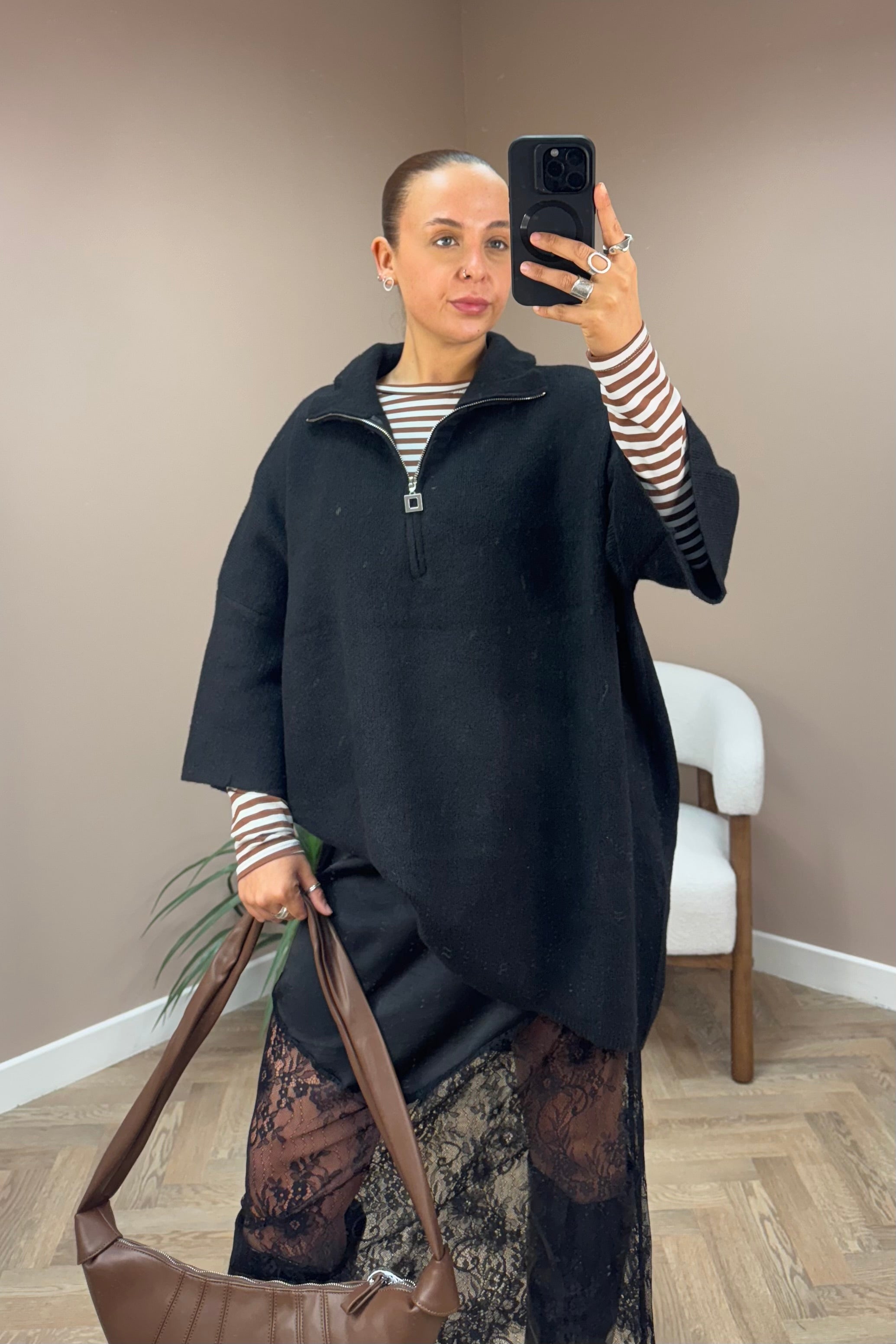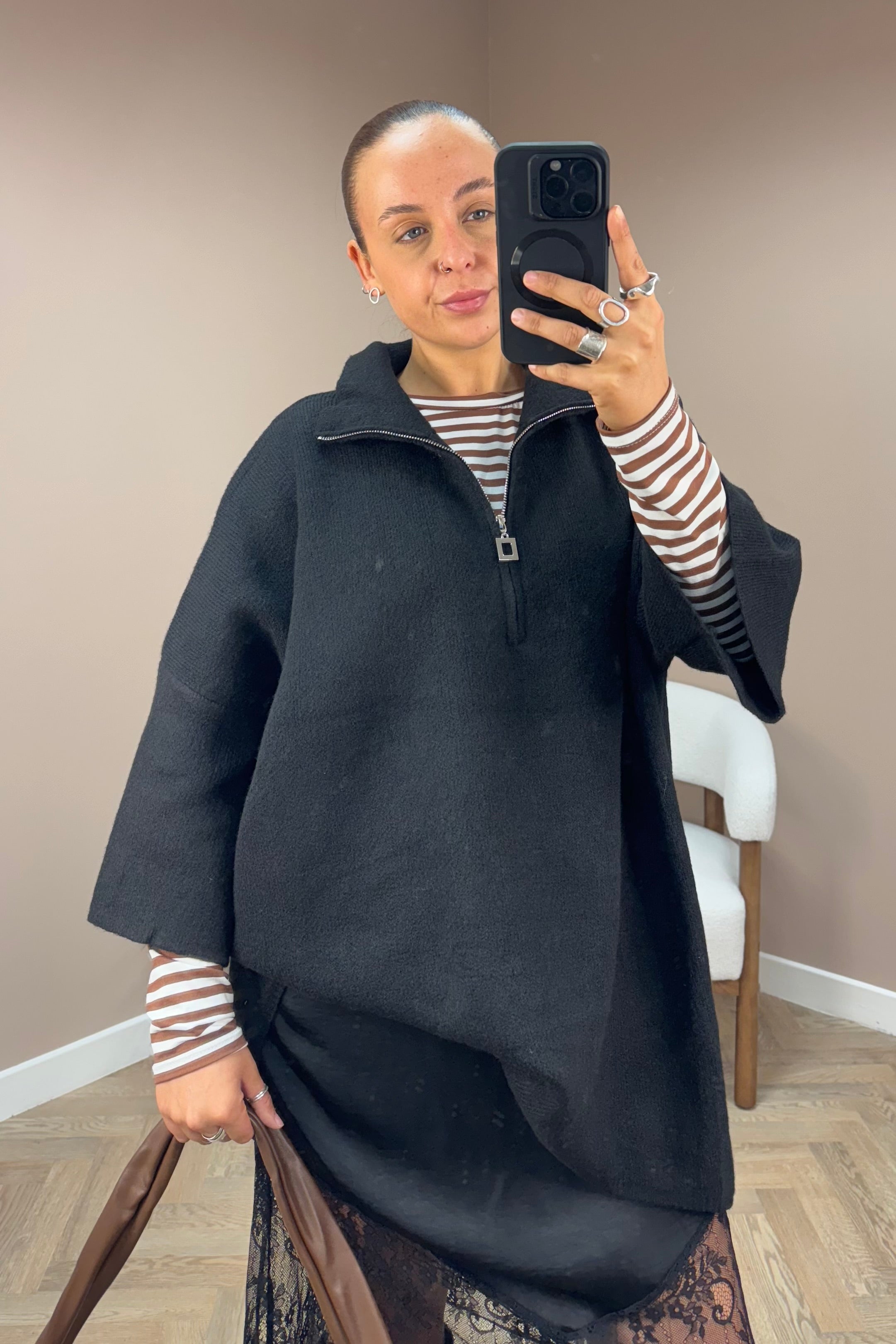 Experience warmth and style with the Long Half Zip Jumper, crafted from a heavy knit ideal for layering. Its adaptable design pairs effortlessly with skirts or trousers, giving you endless outfit options. The half-zip detail adds a modern flair, making this jumper your go-to piece for combining comfort and sophistication every day.