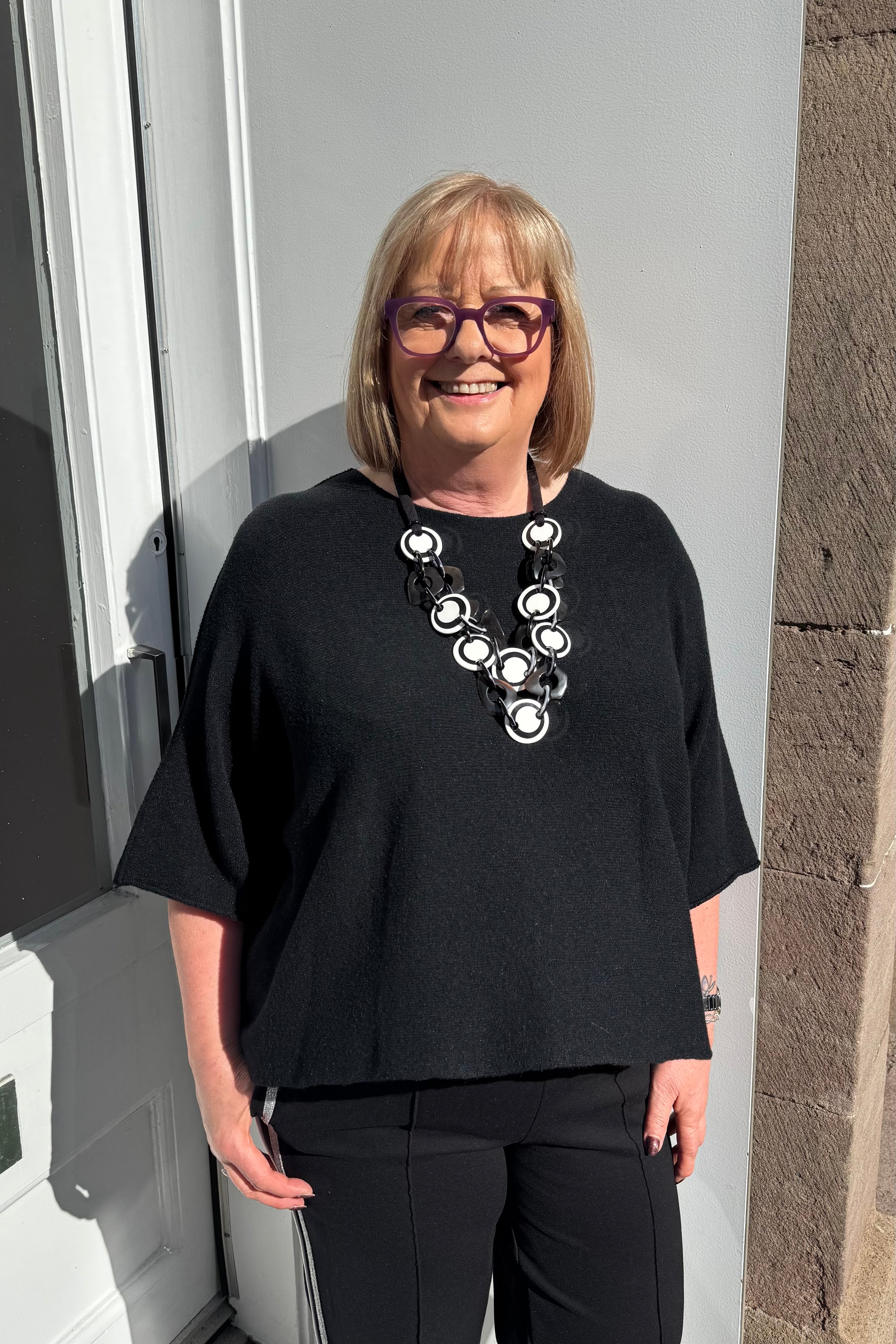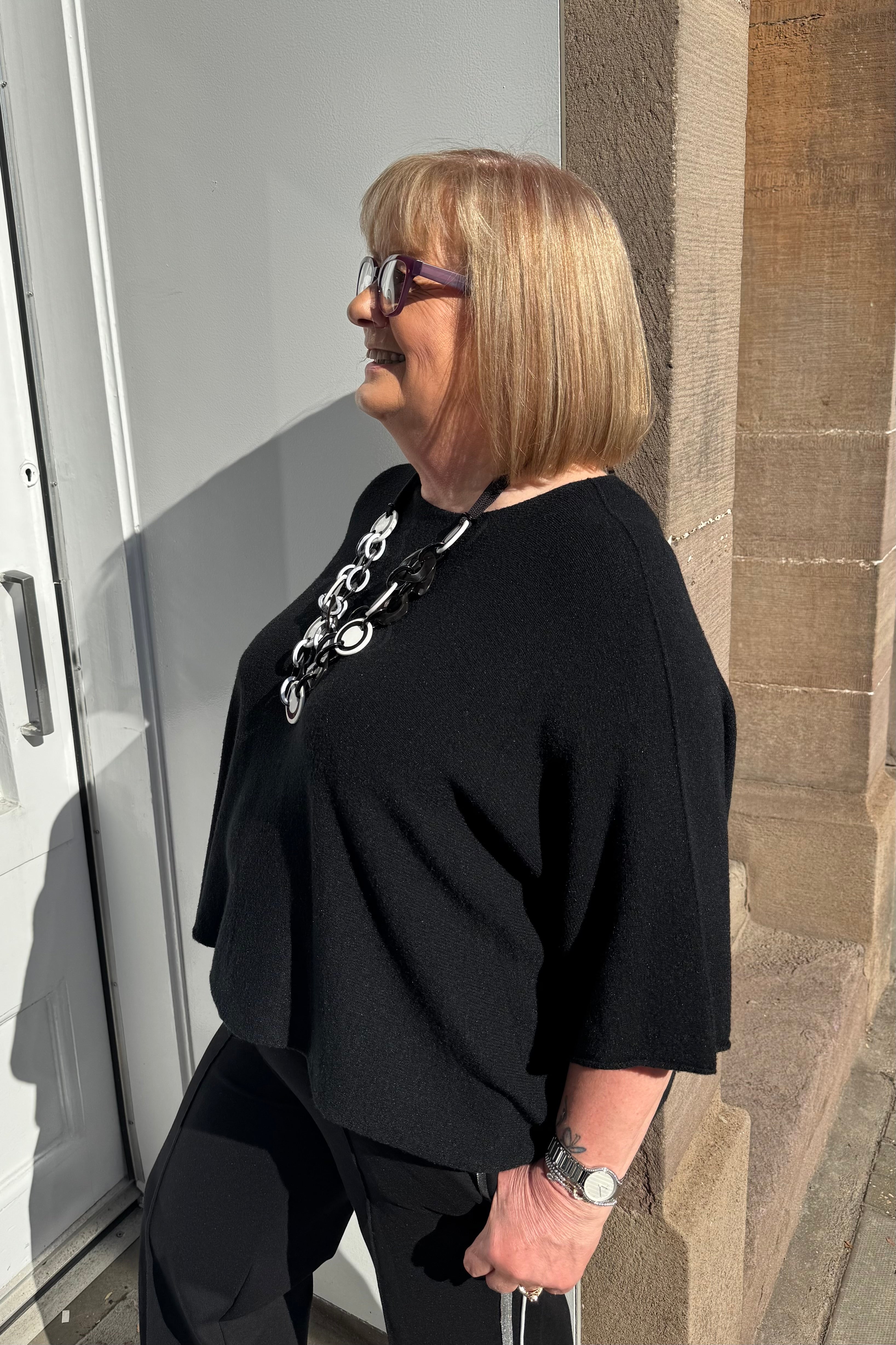 Stay cosy and stylish with this Black Knitted Jumper. Its soft knit fabric offers warmth and comfort, making it perfect for layering on cooler days. The rich teal shade adds a touch of elegance to your casual wardrobe, while the simple design ensures versatile wear for any occasion.