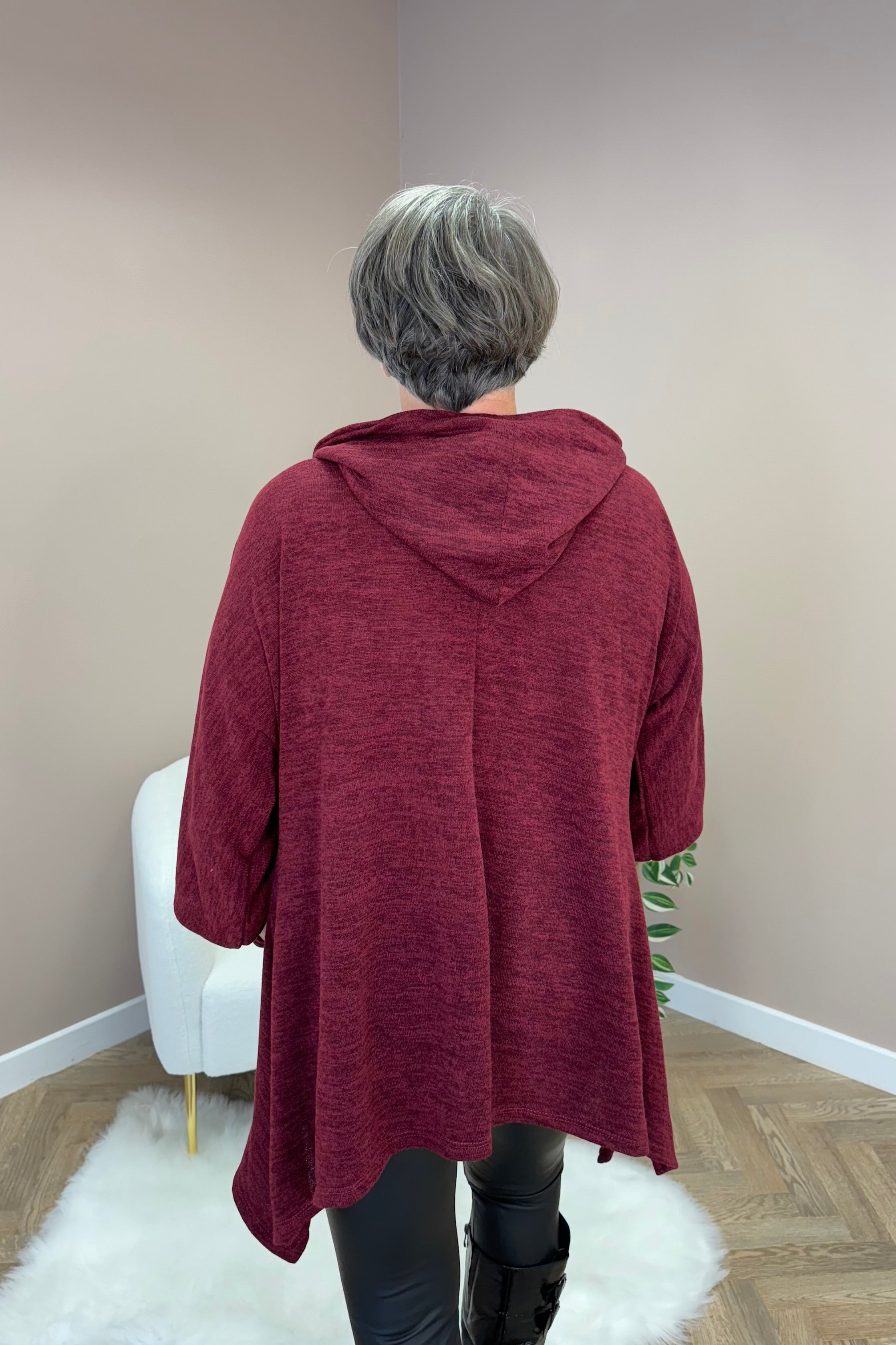 This Burgundy Hooded Tunic features a decorative hood and two front pockets, blending style with practicality. Its floaty silhouette offers an elegant drape, while the soft material ensures all day comfort. Perfect for a refined yet relaxed look.