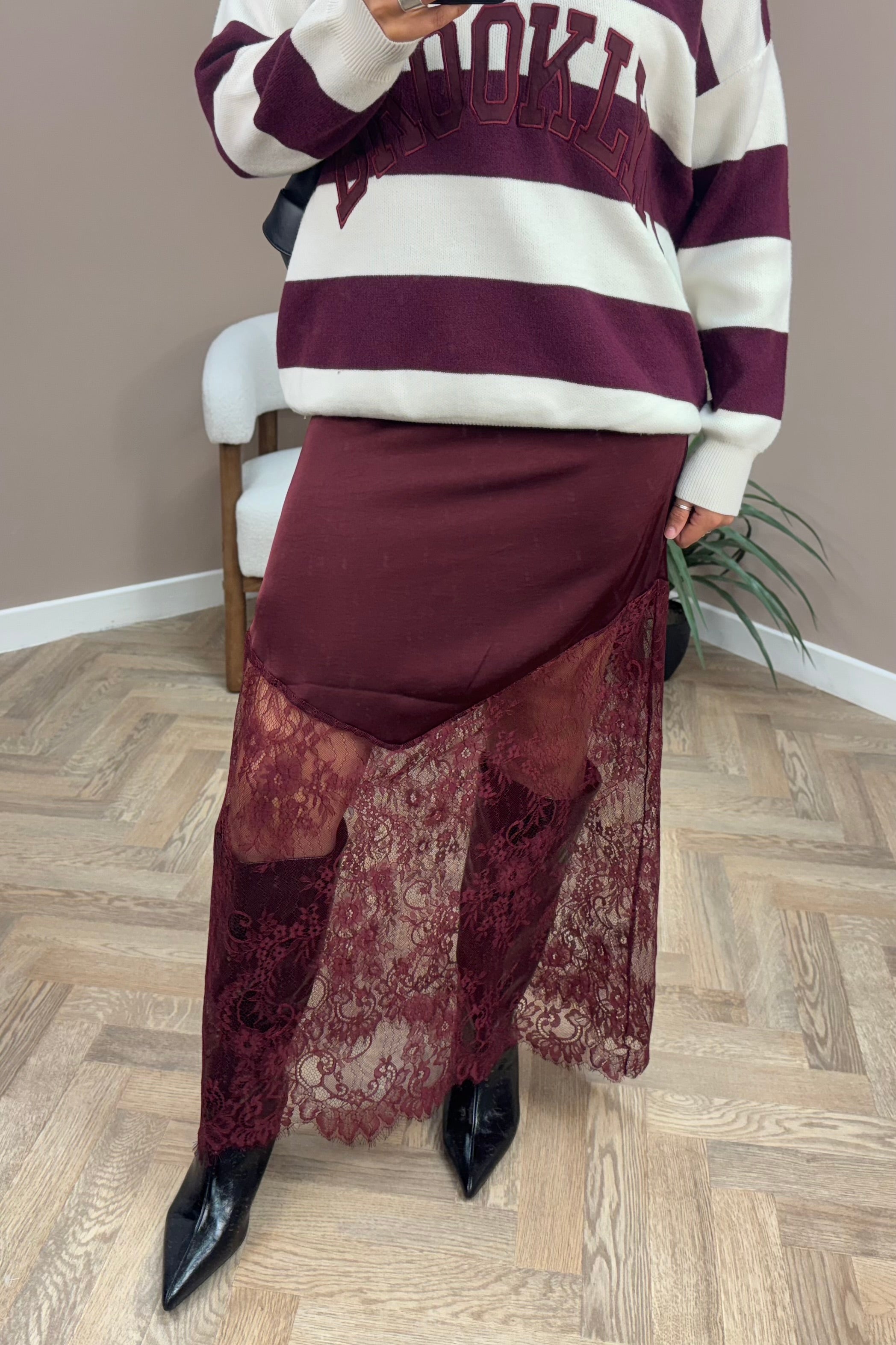 Elevate your wardrobe with this Lace Trim Satin Skirt, expertly designed to flatter every silhouette. The smooth satin fabric drapes elegantly, while the delicate lace trim adds a refined, feminine touch. Its trendy cut ensures a modern yet timeless look, making it perfect for both day and evening wear.
