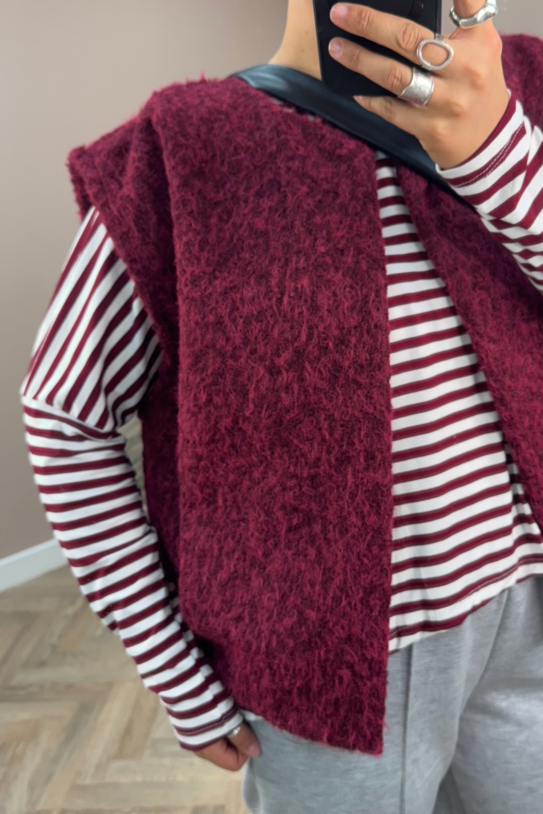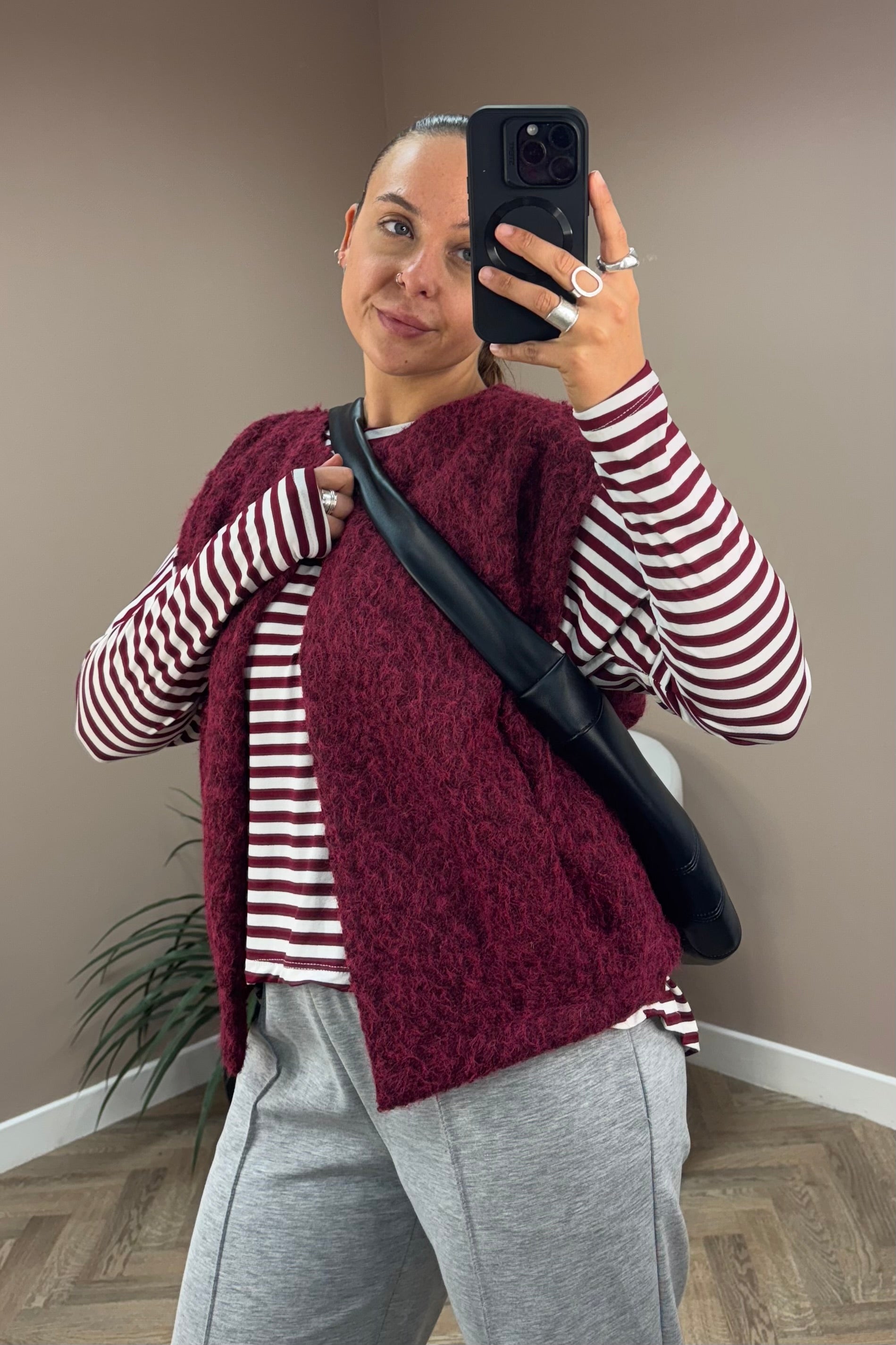 This Burgundy Ruched Side Gilet offers both style and comfort, perfect for layering during cooler days. The ruched detailing on the sides adds a flattering touch, while the soft felt material ensures warmth without bulk. Ideal for enhancing your casual or smart-casual outfits with an extra layer of cozy sophistication.