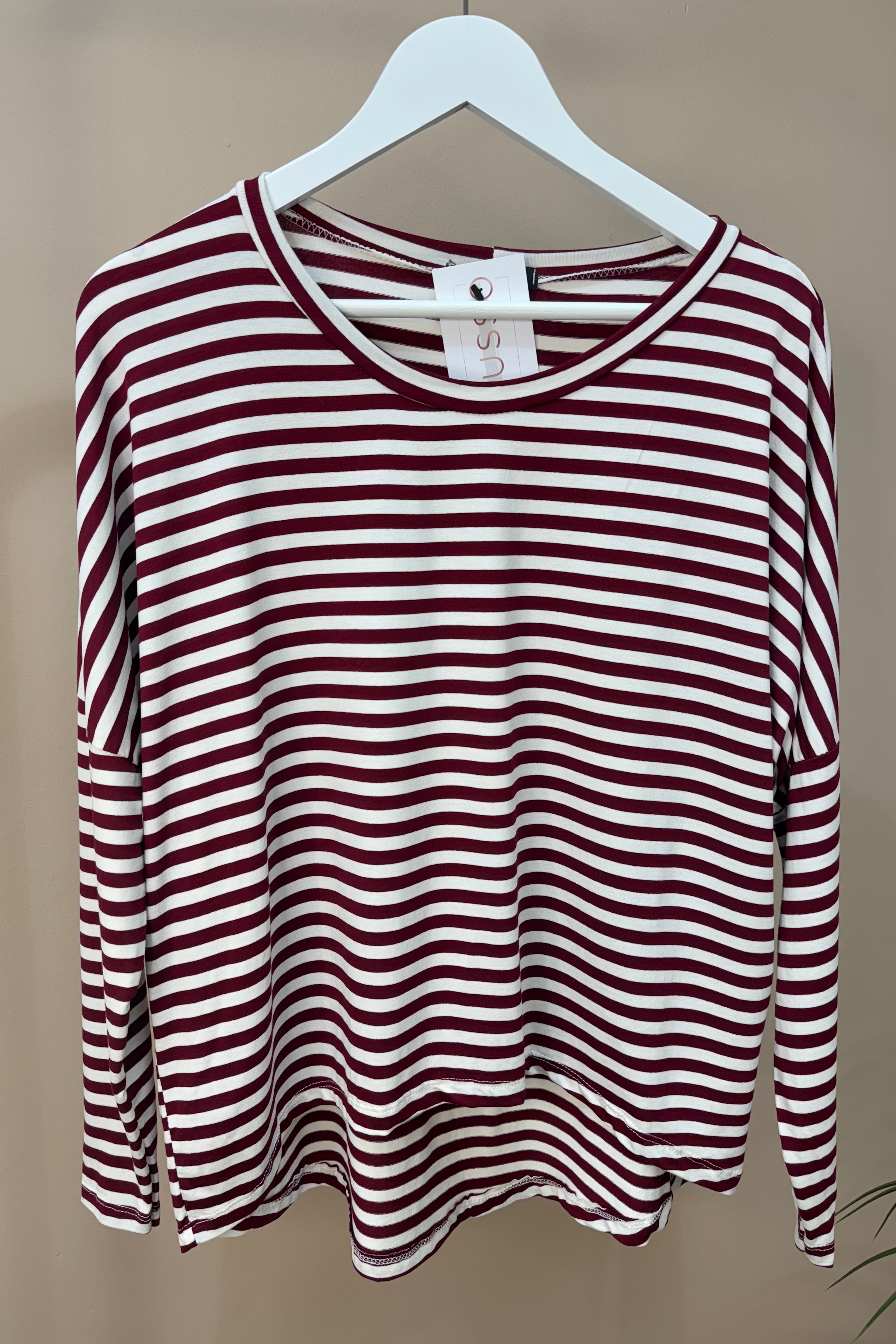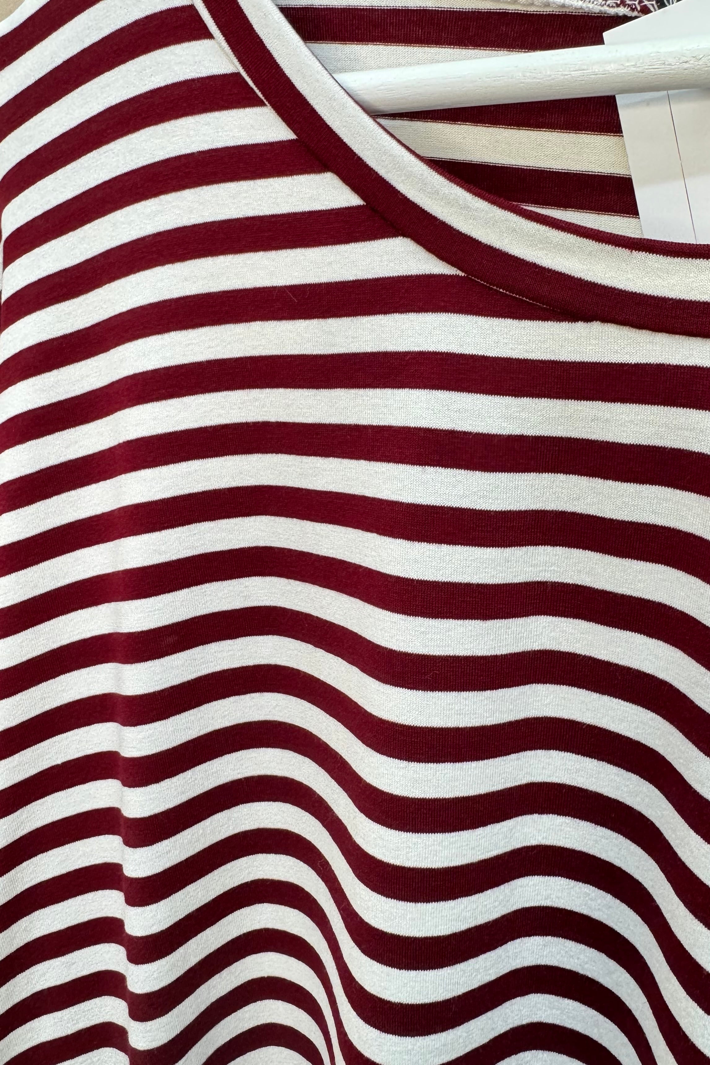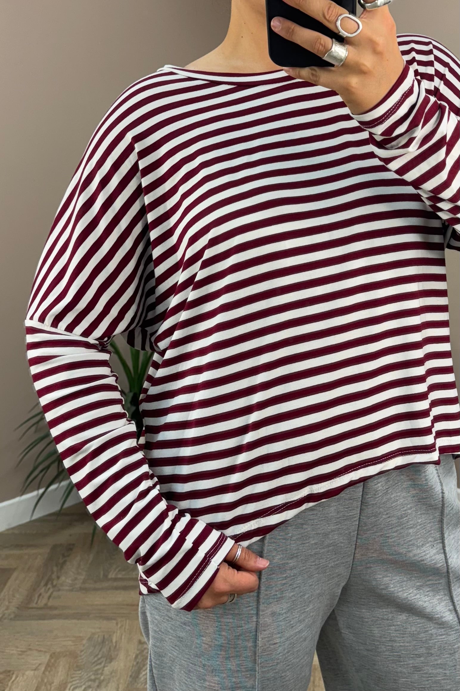 The Burgundy Stripped Layering Top is a wardrobe essential designed for versatility and style. Perfect for layering under jumpers or cardigans, it also stands out on its own with a sleek, modern fit. Its comfortable fabric and minimalist design make it an indispensable piece that adapts seamlessly to any look or season.