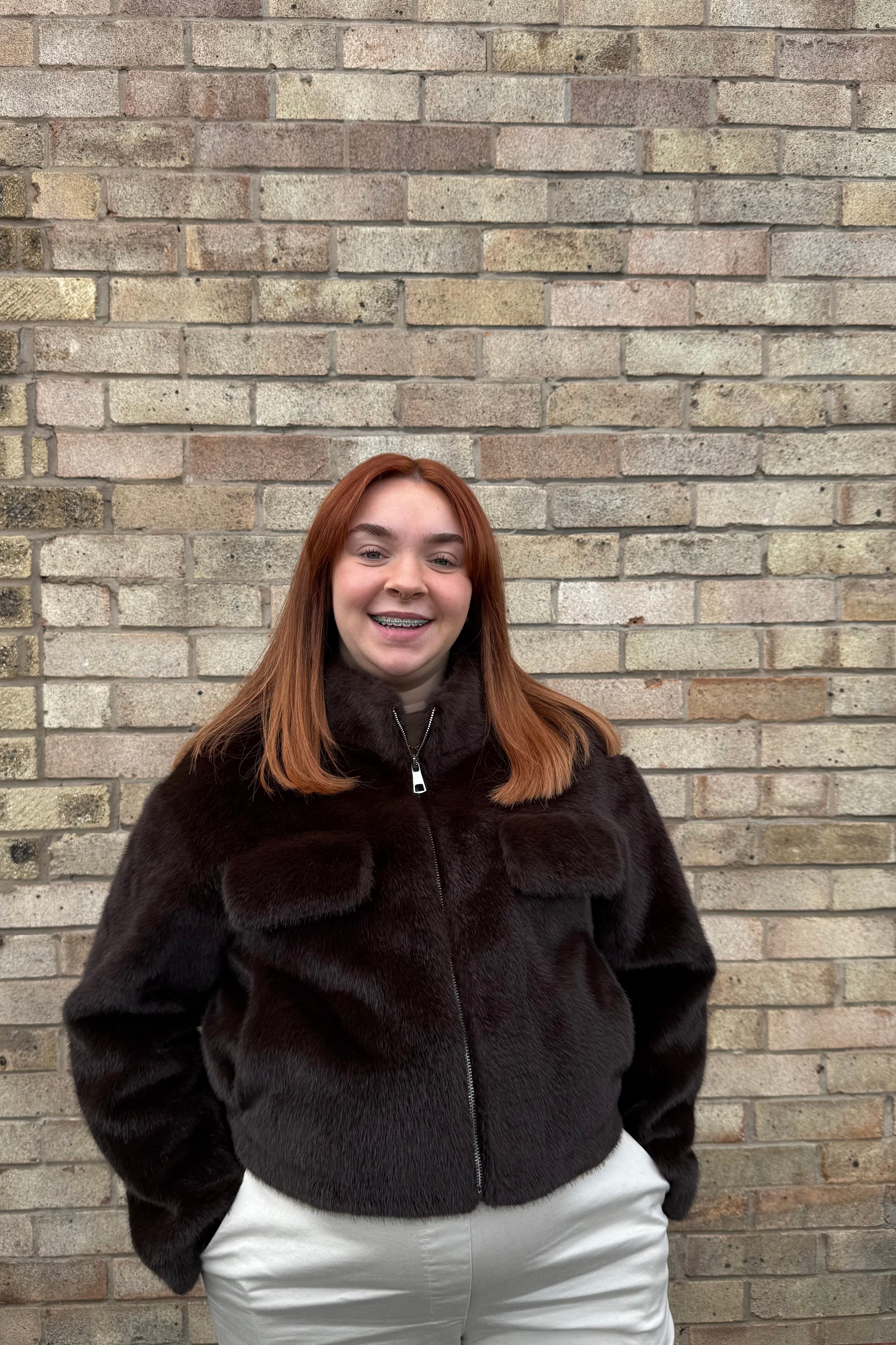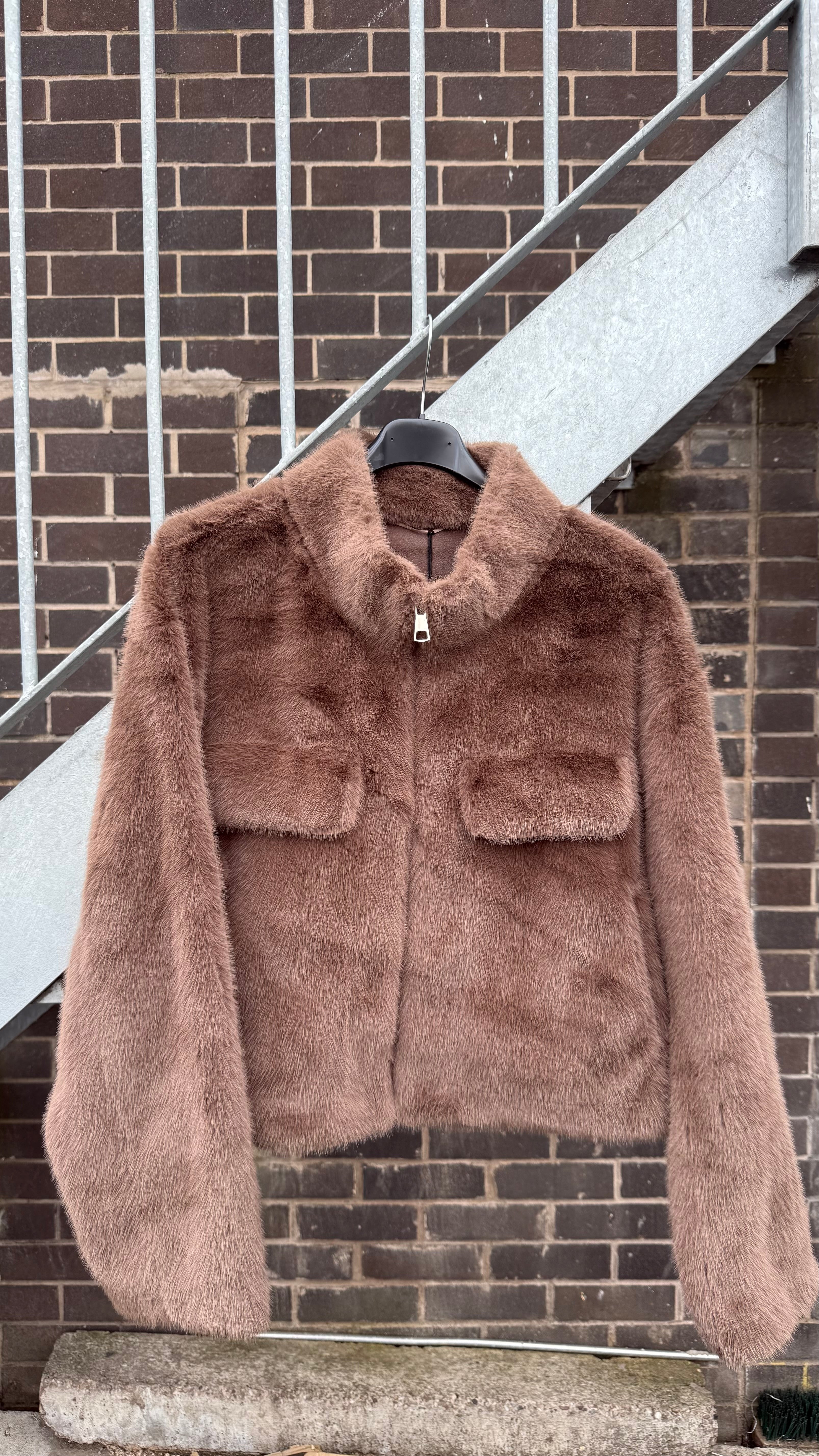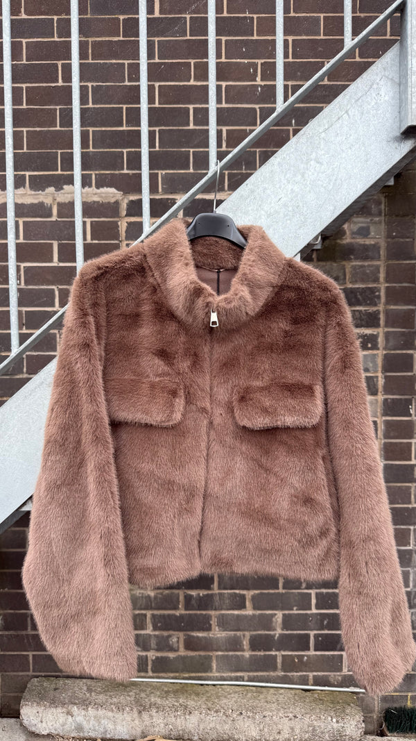 Wrap yourself in understated luxury with this chestnut brown faux fur jacket. Its plush finish and structured silhouette create an effortlessly chic look that turns heads without trying. The warm chestnut hue adds depth and richness, making it a versatile statement piece for every wardrobe. Whether styled with casual denim or draped over an evening outfit, this jacket brings instant polish and sophistication to your look.