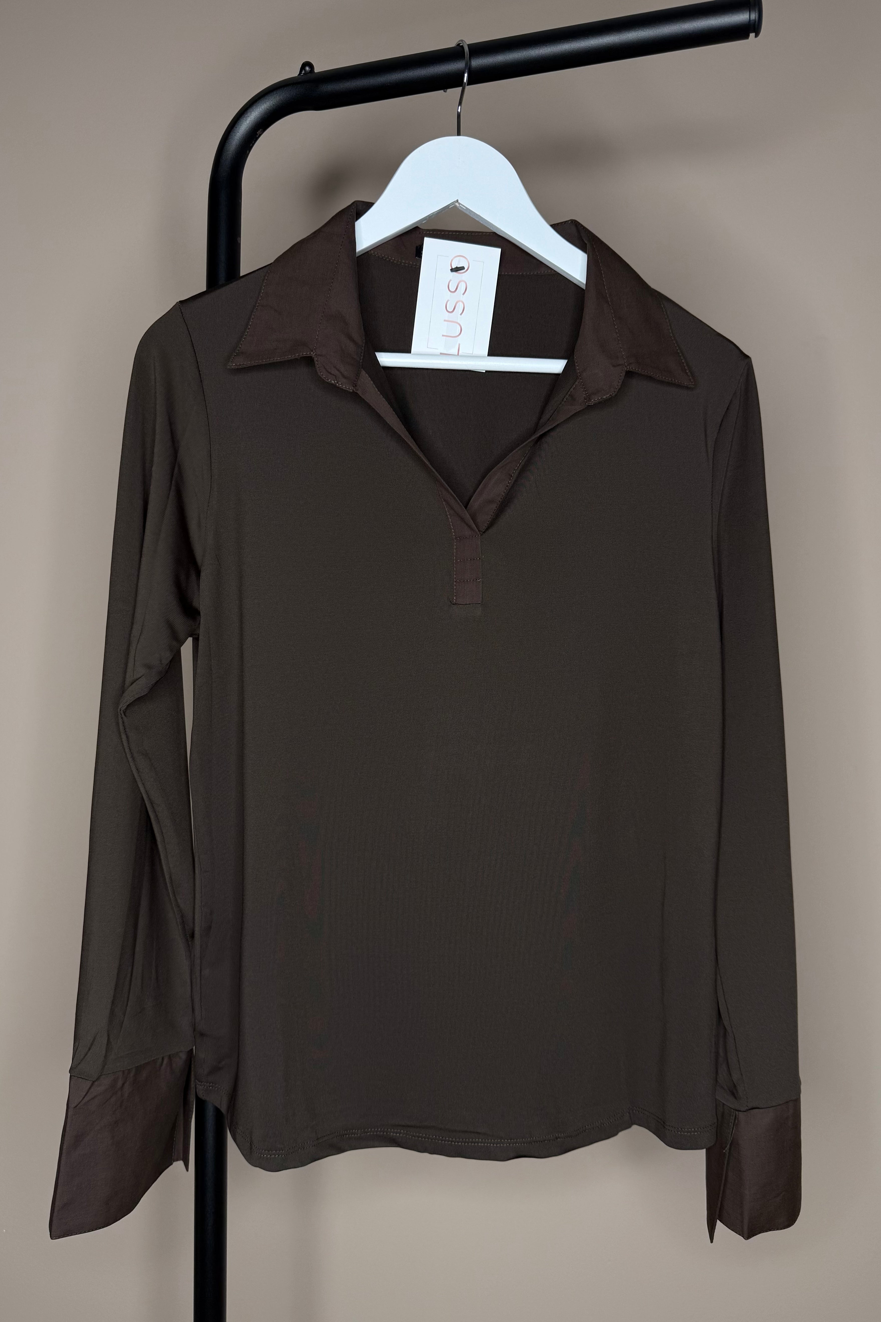 Chocolate Brown Stretch Cotton Collar & Cuffs Blouse