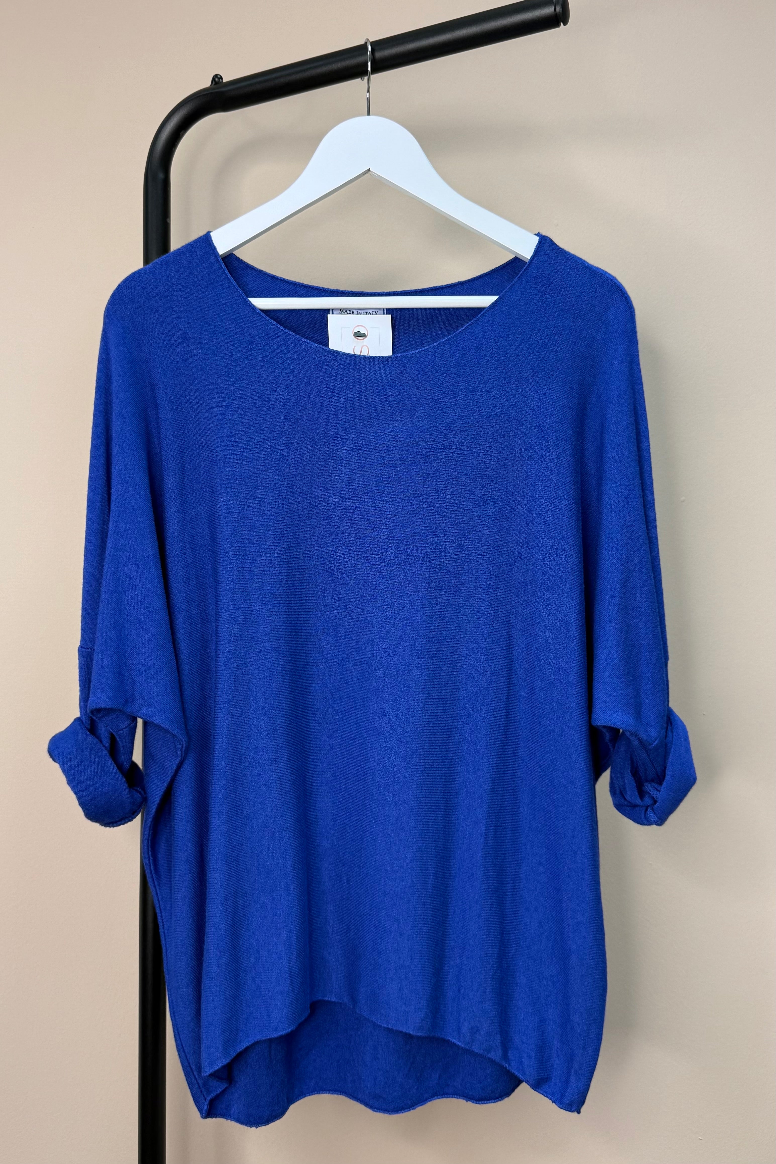 Enjoy ultimate comfort with the Cobalt Blue Soft Knit Jumper, a lightweight layer perfect for any mood. Its fine knit fabric feels delightfully soft, while the longer back adds a trendy twist. Roll up the sleeves for a fun, casual vibe or let them down for a cozy, relaxed feel—this jumper adapts to your style effortlessly.