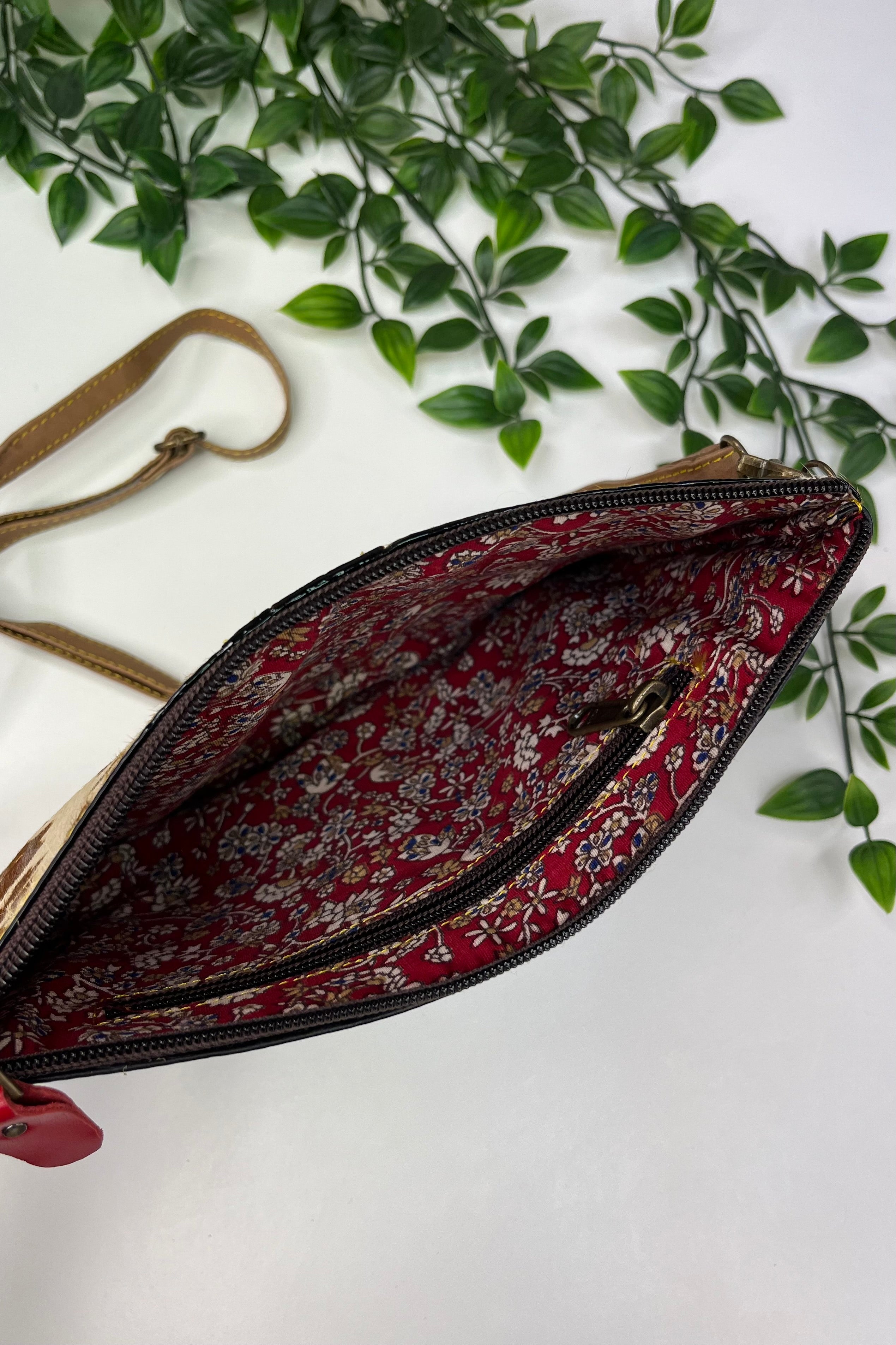 Made from recycled leather, each pouch has its own unique natural marks that add charm and blend beautifully with the bright colours over time.