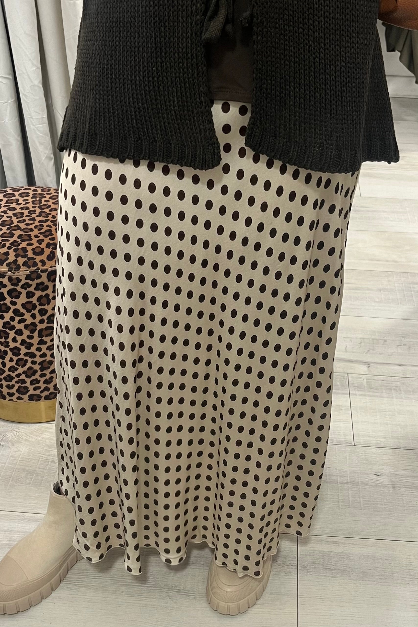 Cream and Brown Spotty Maxi Skirt