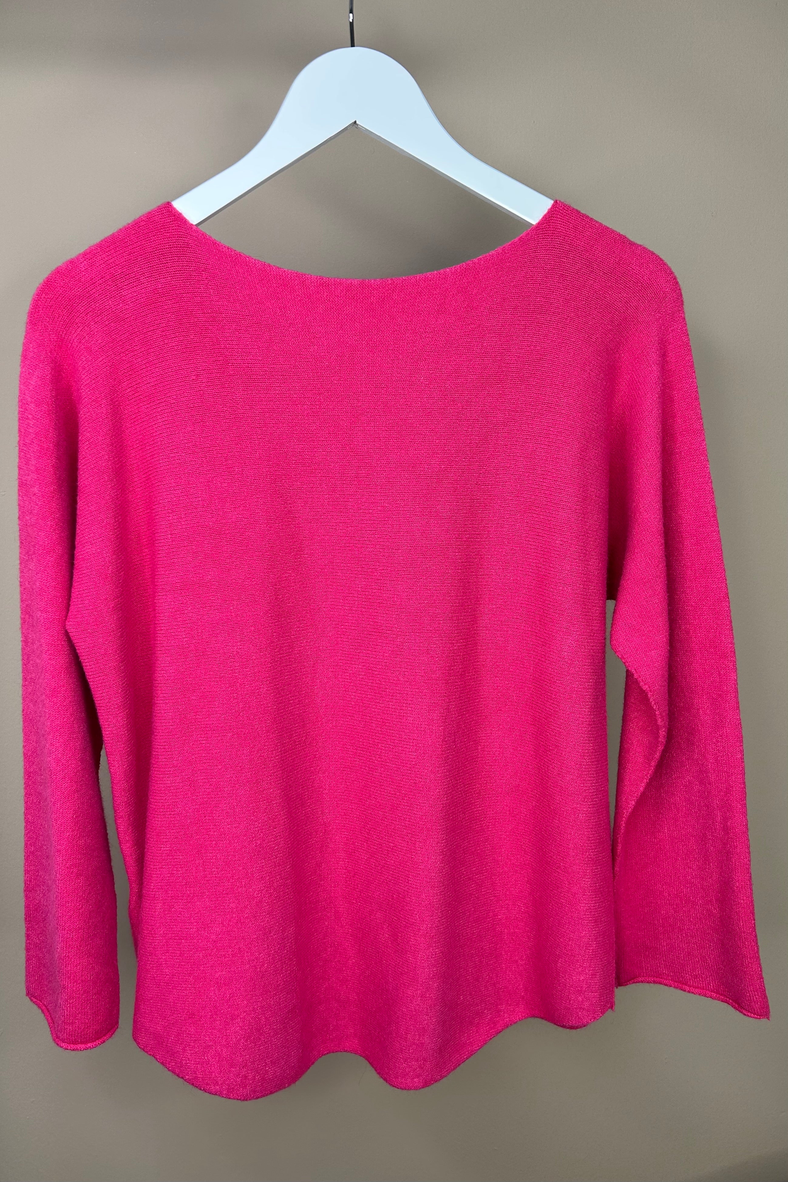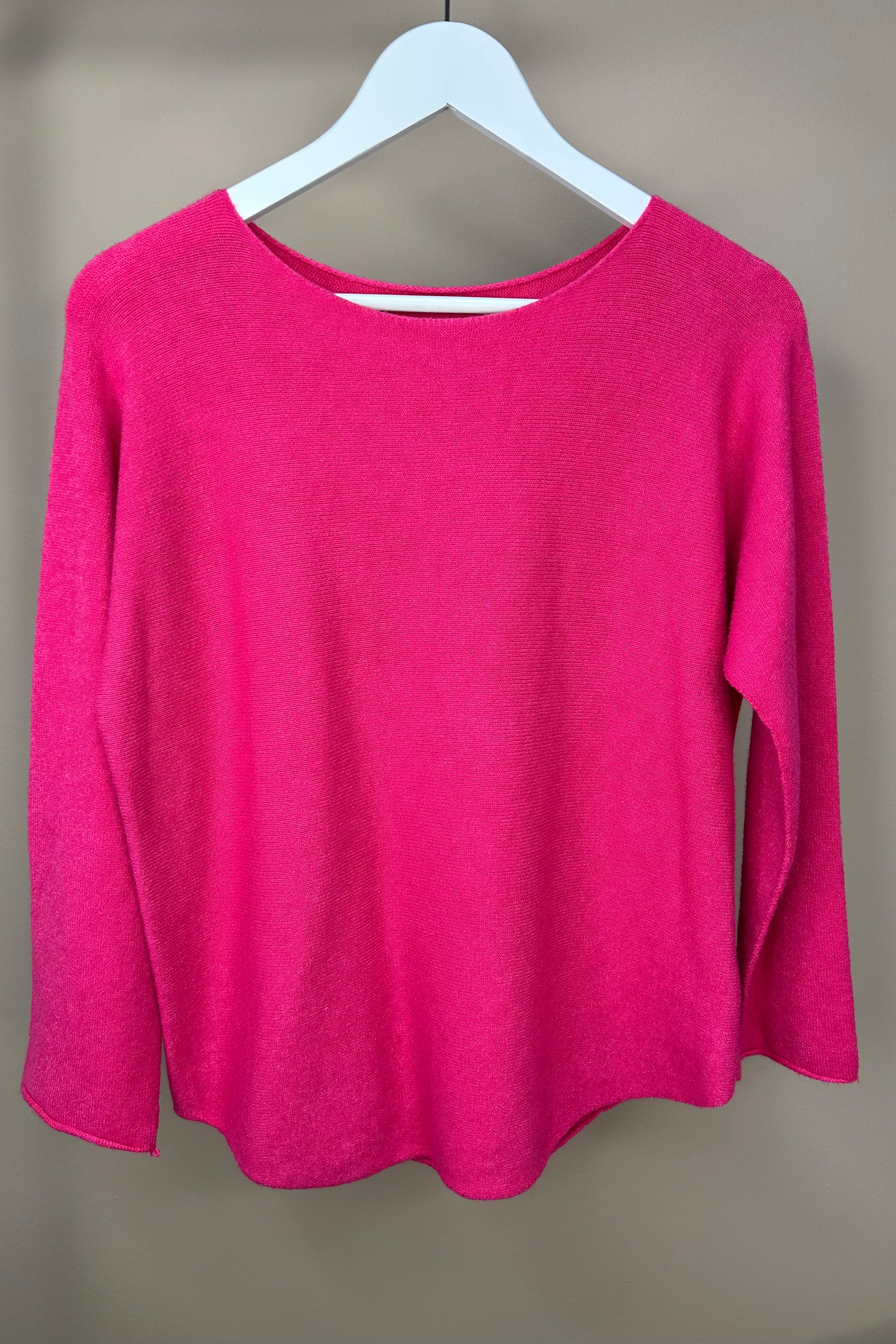 Stay cozy and stylish with this Fuchsia Plain Knitted Jumper. Its soft knit fabric offers warmth and comfort, making it perfect for layering on cooler days. The rich purple shade adds a touch of elegance to your casual wardrobe, while the simple design ensures versatile wear for any occasion.