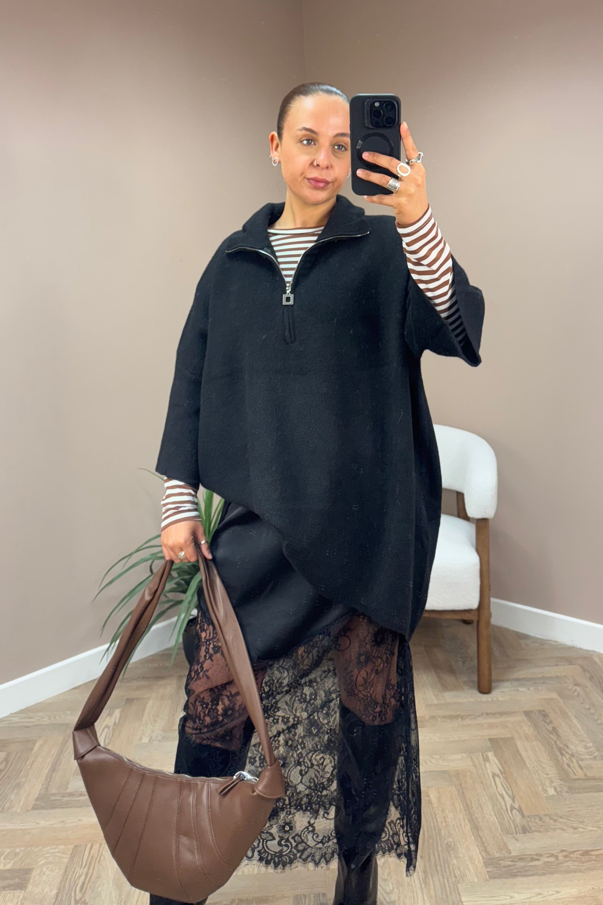 Experience warmth and style with the Long Half Zip Jumper, crafted from a heavy knit ideal for layering. Its adaptable design pairs effortlessly with skirts or trousers, giving you endless outfit options. The half-zip detail adds a modern flair, making this jumper your go-to piece for combining comfort and sophistication every day.
