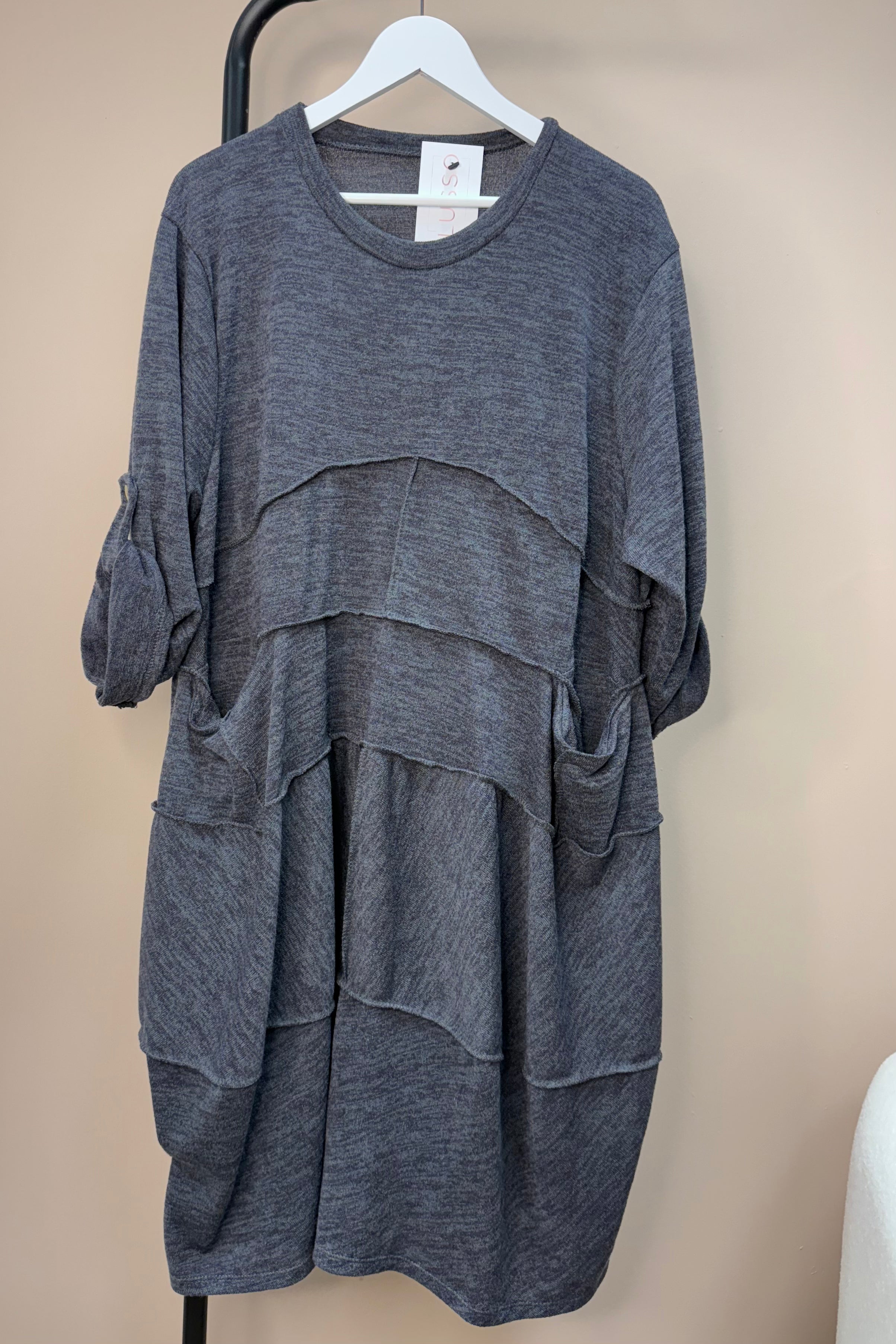 This Grey Marl Seam Tunic Dress offers a relaxed fit that feels effortlessly chic. With button details on the sleeves, you can roll them up for a casual vibe or let them hang longer for a laid-back look. The beautiful seamed detail adds just the right amount of flair, transforming this tunic into a playful yet elegant piece perfect for everyday fun.