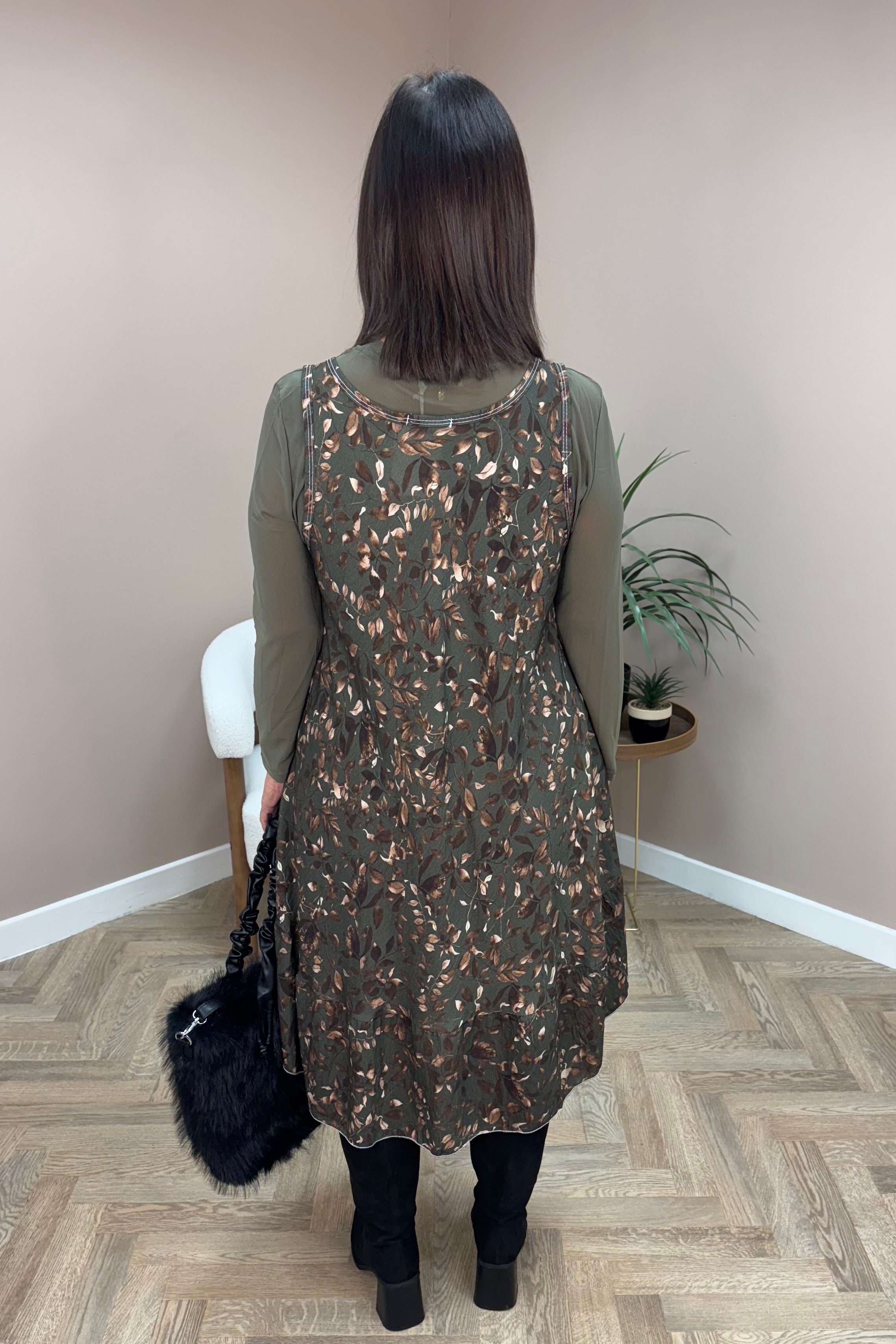 The Khaki Autumn Leaf Dress combines expert design with seasonal versatility. Crafted in a lightweight, floaty fabric, it offers effortless movement and comfort through autumn’s changing temperatures. Its rich green hue evokes the glow of fall foliage, making it a sophisticated choice for layering or standalone wear during transitional days.