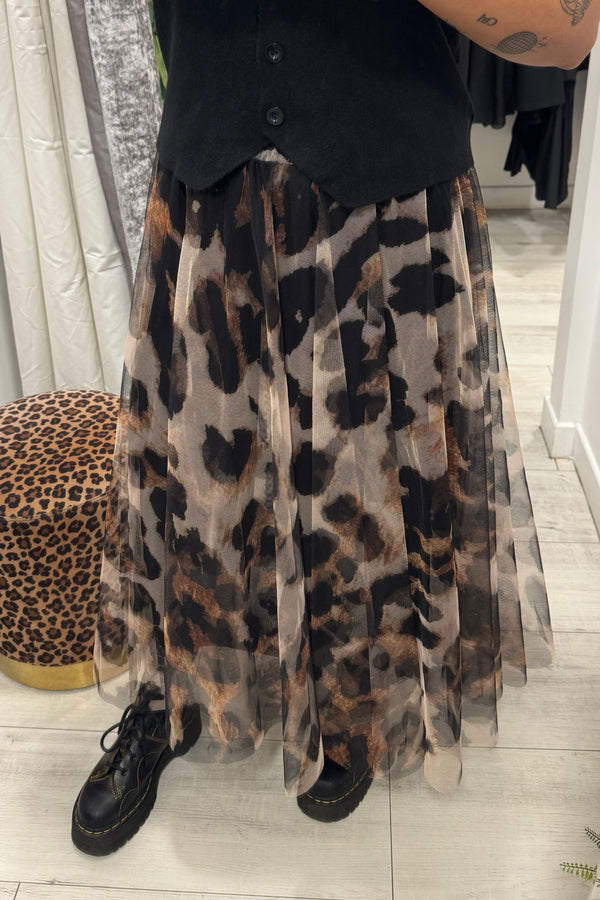 PRE-ORDER 1 Week. Large Leopard Printed Tulle Maxi Skirt