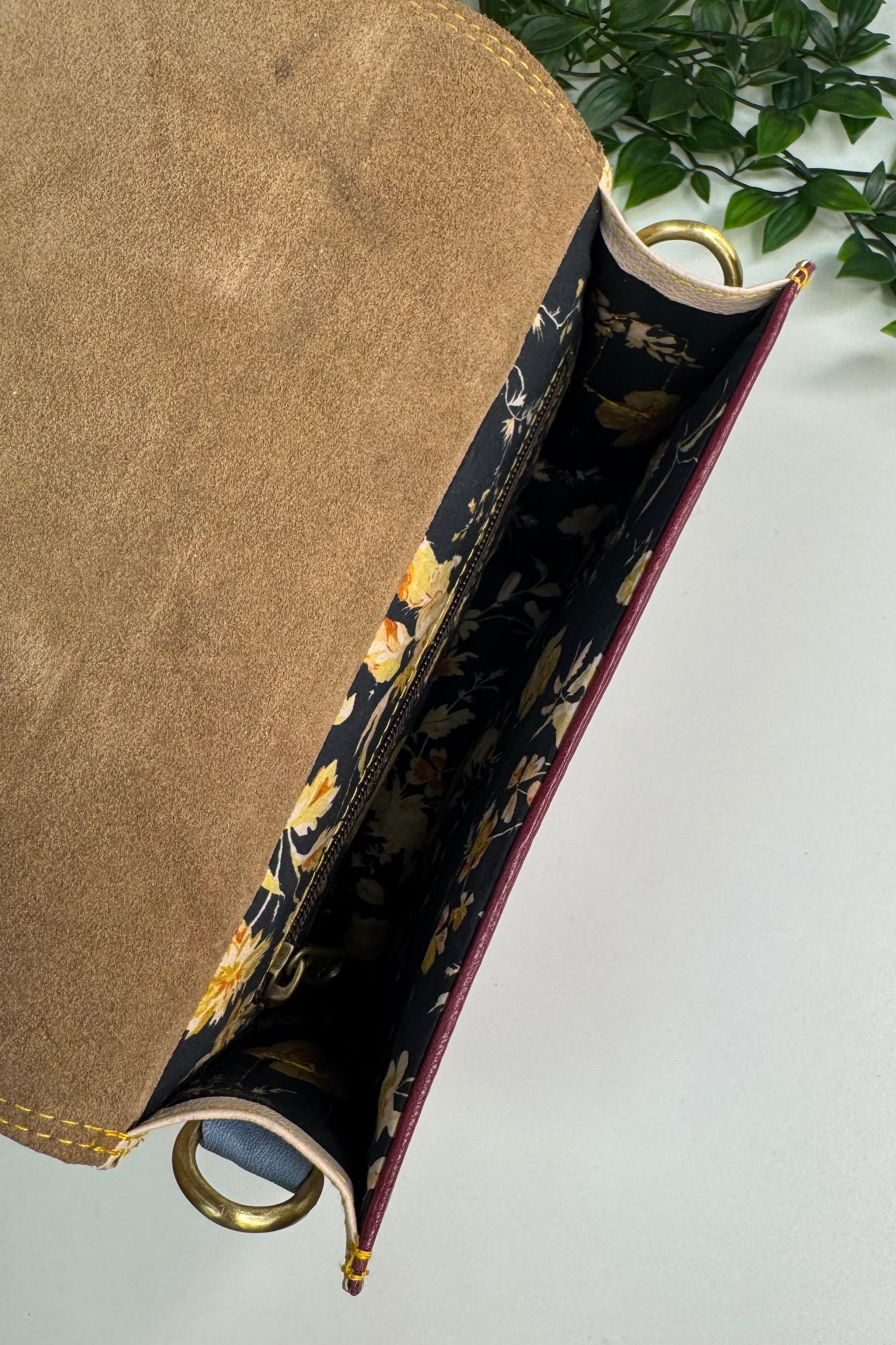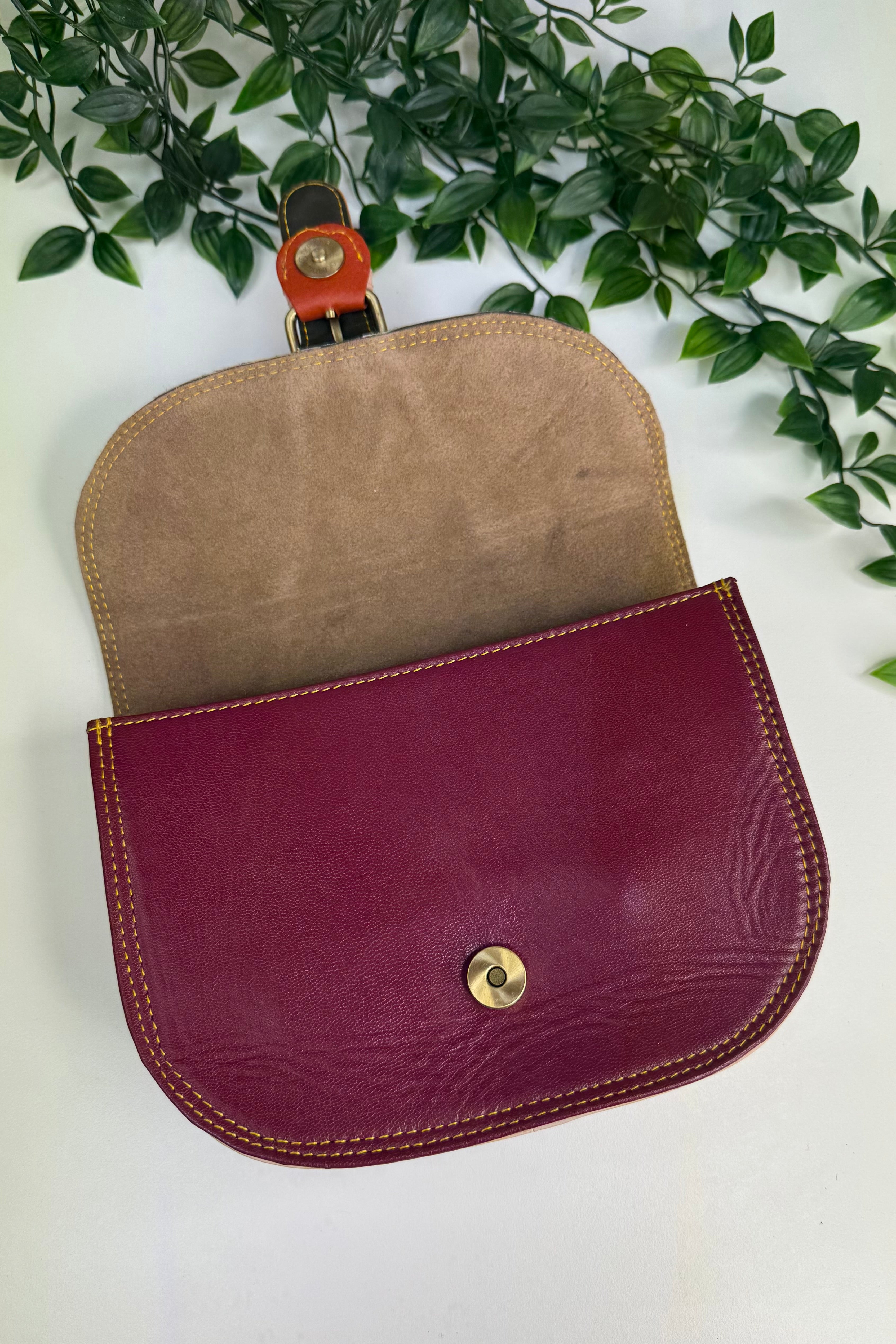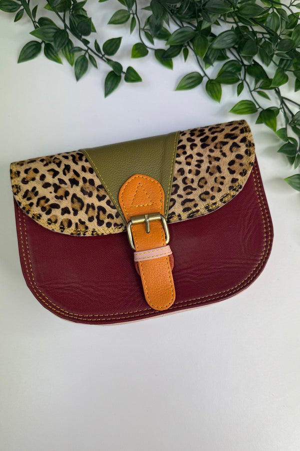 Made from recycled leather, each bag has its own unique natural marks that add charm and blend beautifully with the bright colours over time.