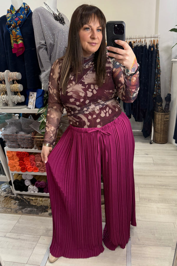 These Pleated Trousers combine elegance with comfort through their flowy, flattering silhouette. Designed with a faux drawstring and an elasticated waist, they offer a refined fit without compromising ease of wear. Perfect for a polished look that moves gracefully throughout your day.