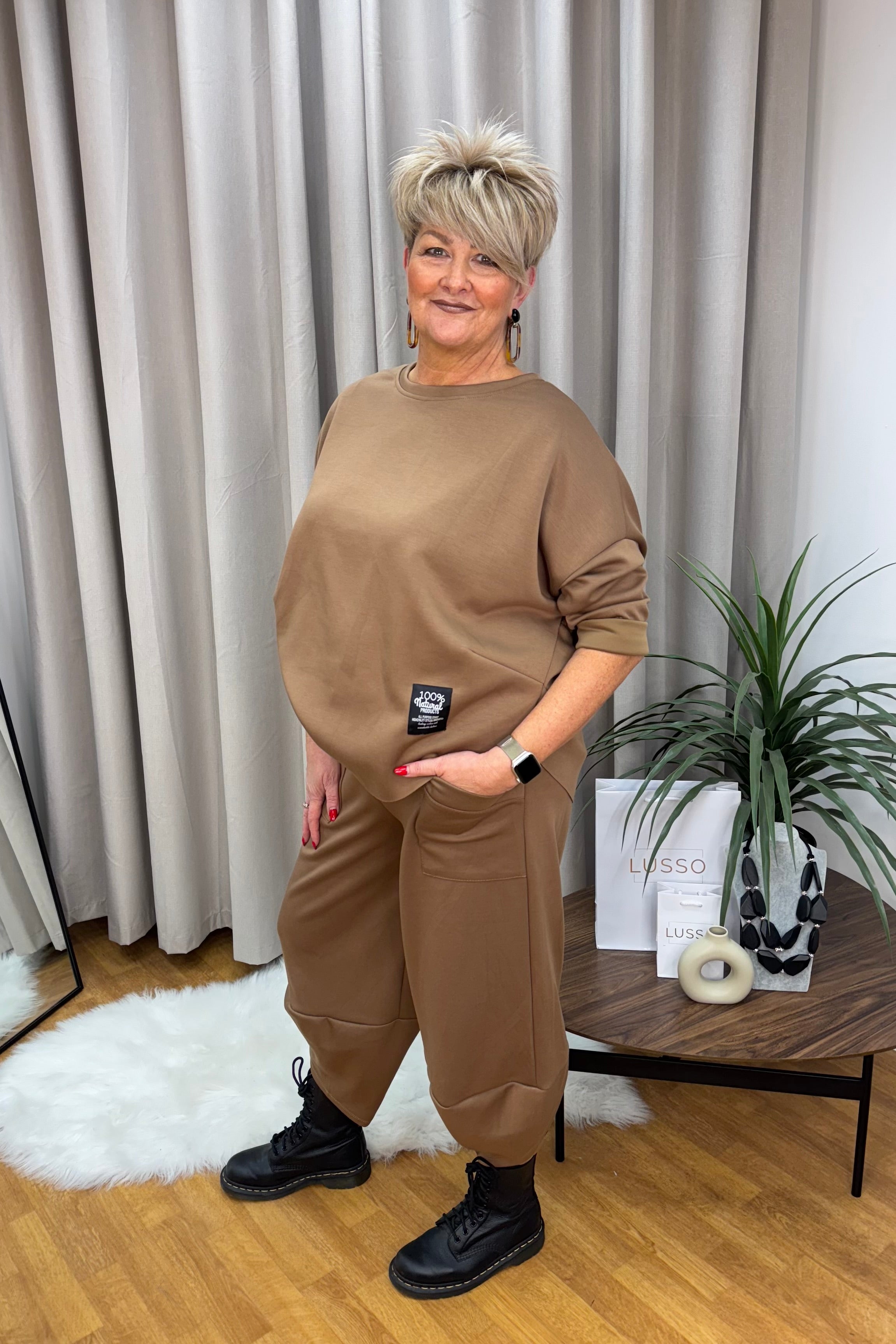Slip into the Scuba Lounge Set and experience the ultimate in comfort! Crafted from super soft material, this set with cocoon style bottoms will become your go to outfit for lazy days at home or casual errands out and about. Who says you can’t be comfy and cute at the same time?