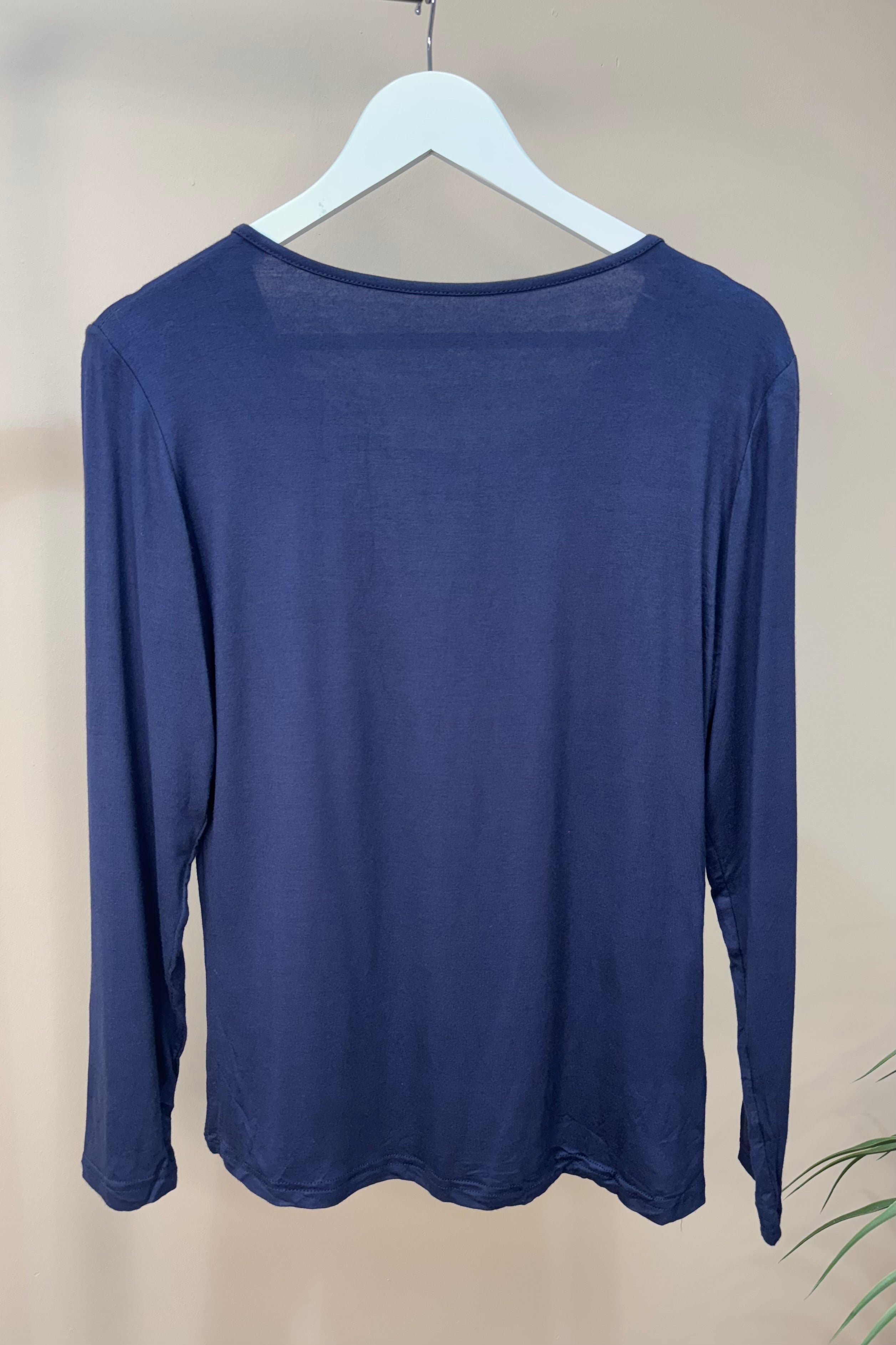 Elevate your wardrobe with this Navy Long Sleeve Layering Top, crafted for versatile sophistication. Its neutral tone and sleek design make it an essential piece to seamlessly layer under jackets or wear on its own, offering both comfort and understated elegance throughout the seasons.