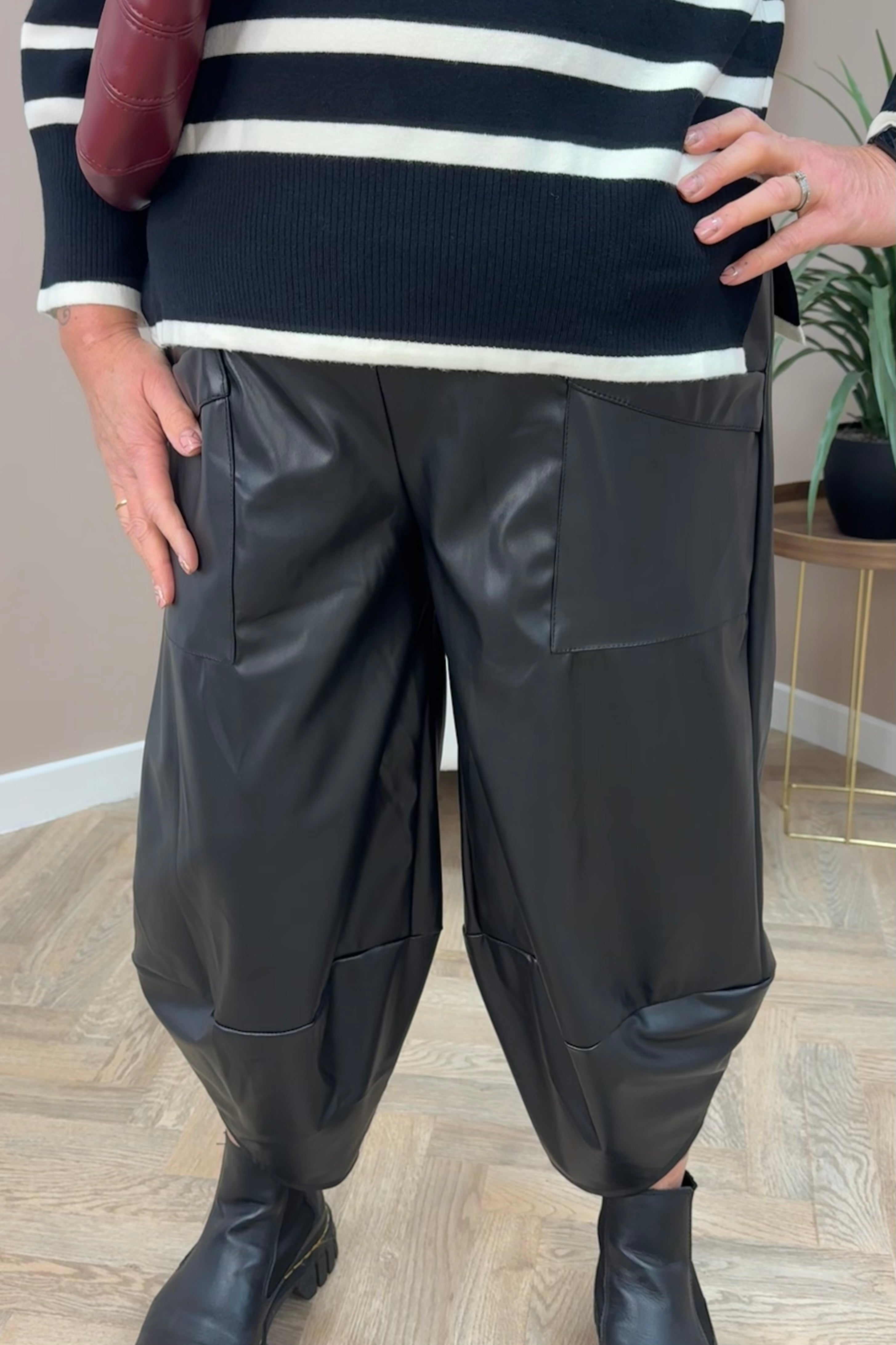 Elevate your autumn wardrobe with our Black PU Cocoon Trousers – the perfect blend of comfort and contemporary edge. Crafted from premium PU, these trousers drape effortlessly with a flattering cocoon silhouette that feels both modern and timeless. Soft to the touch yet structured in style, they’re designed to move seamlessly from day to night. Pair with sleek knits or tailored blazers for a polished look that exudes confidence. A versatile must-have for the style-conscious woman who knows how to make a statement.
