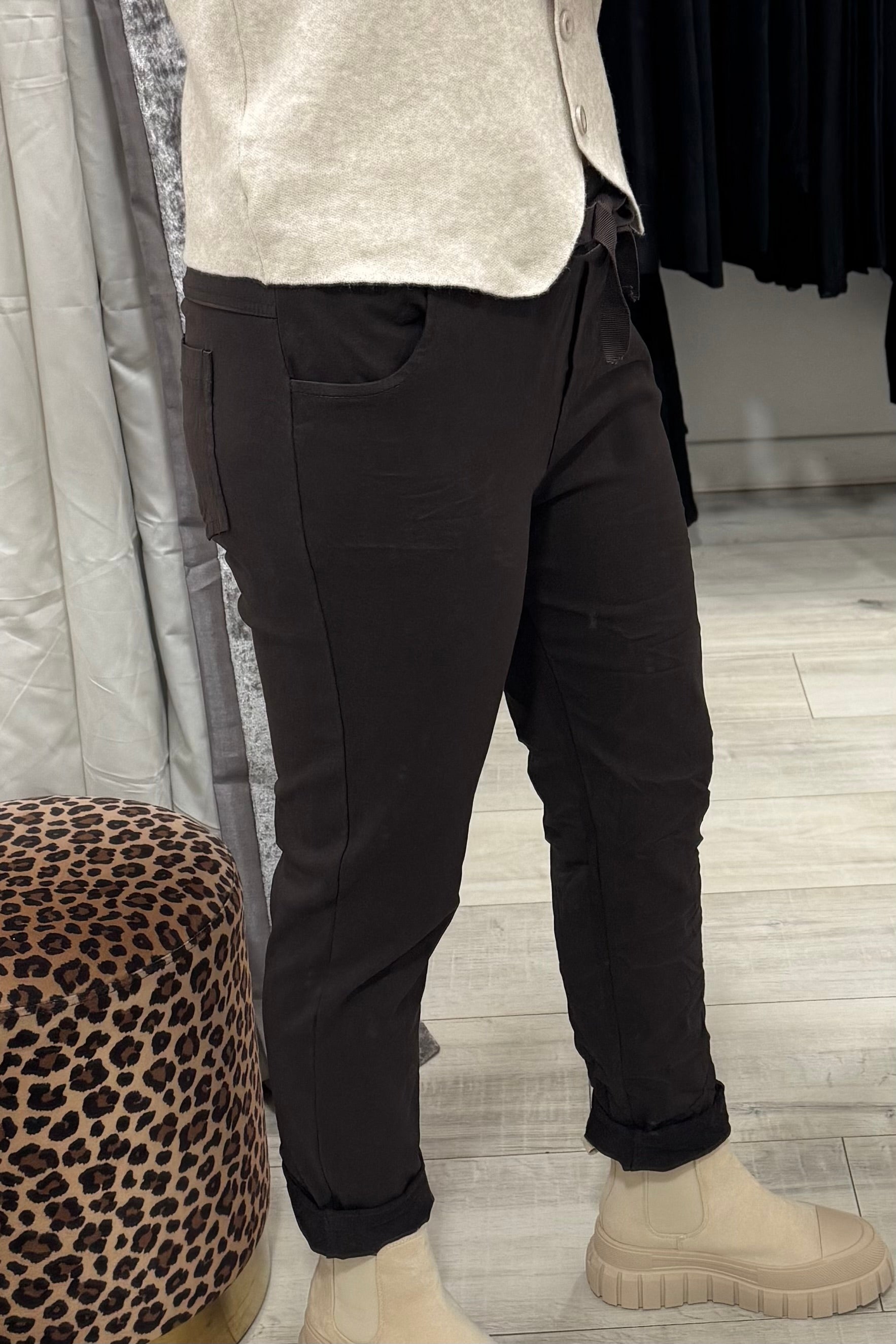 Why ‘Magic Trousers’? It’s all in the fit. Crafted in Italy, these ultra-stretch trousers adapt to your shape with ease, offering exceptional comfort and effortless style. Designed with a flexible waistband, rear pockets, and flattering stretch through the leg, they move with you all day. Lightweight and versatile, they can be worn full length or rolled for a cropped look - perfect for casual days, chic styling, or travel-ready outfits.