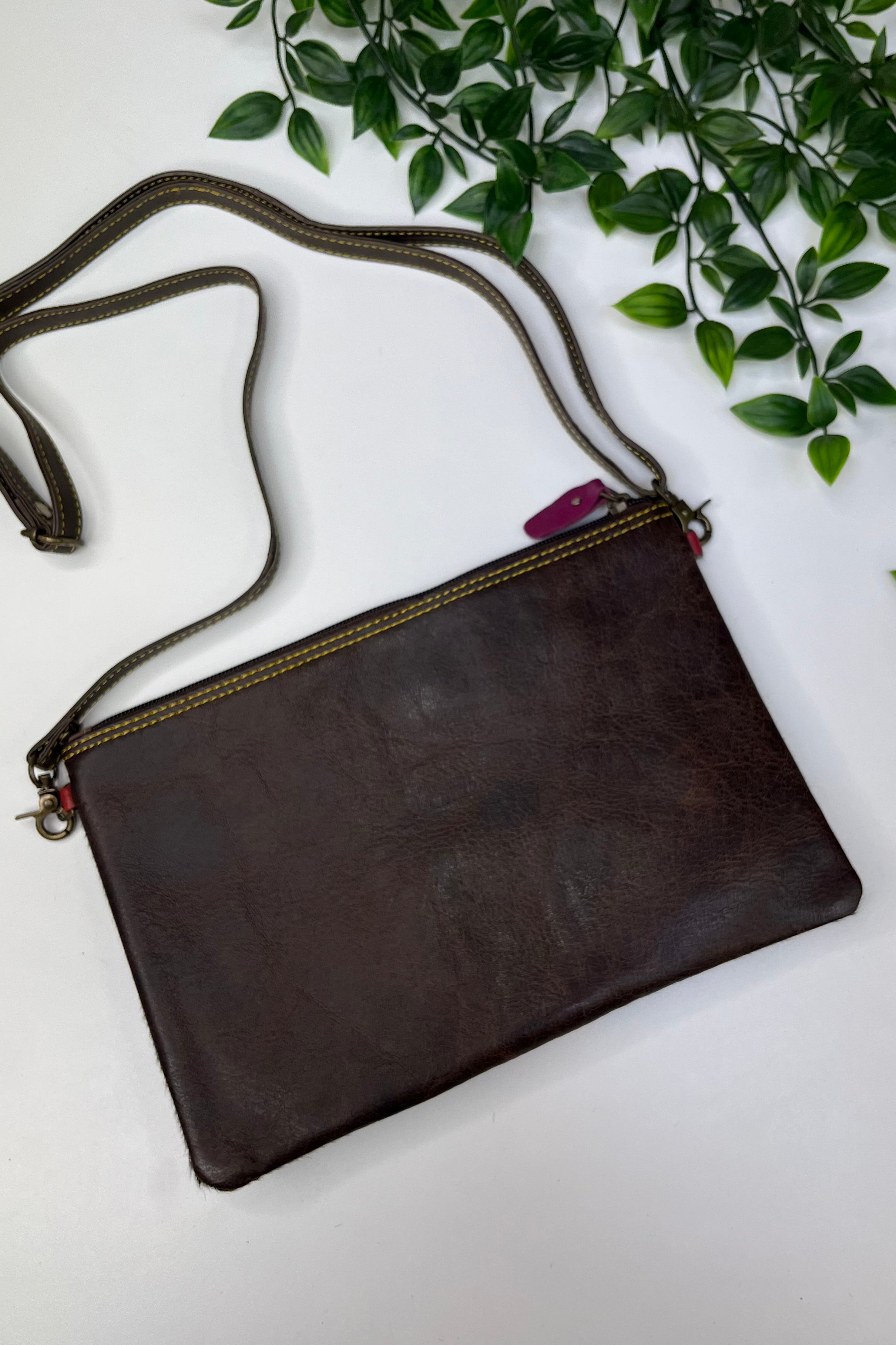 Made from recycled leather, each pouch has its own unique natural marks that add charm and blend beautifully with the bright colours over time.