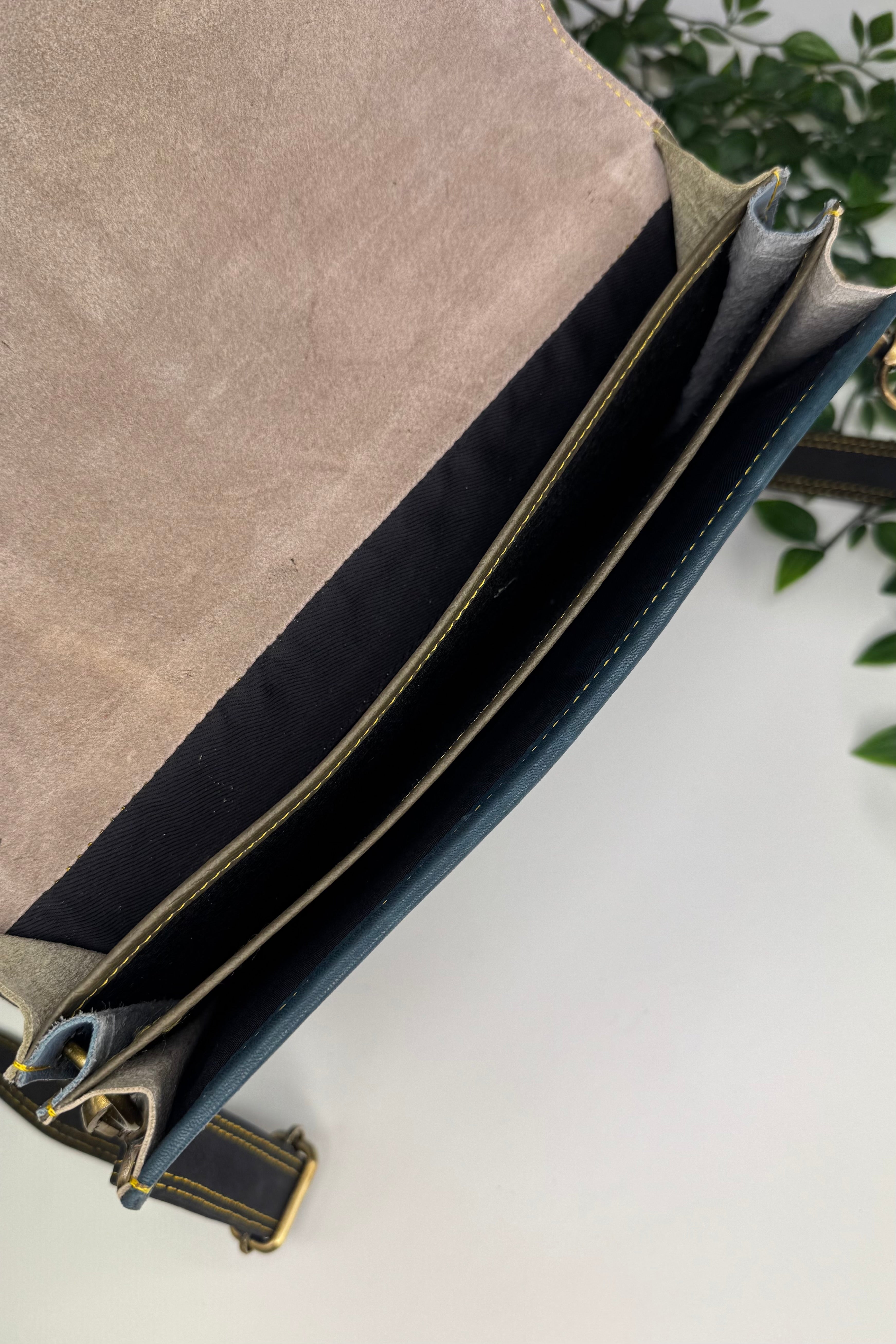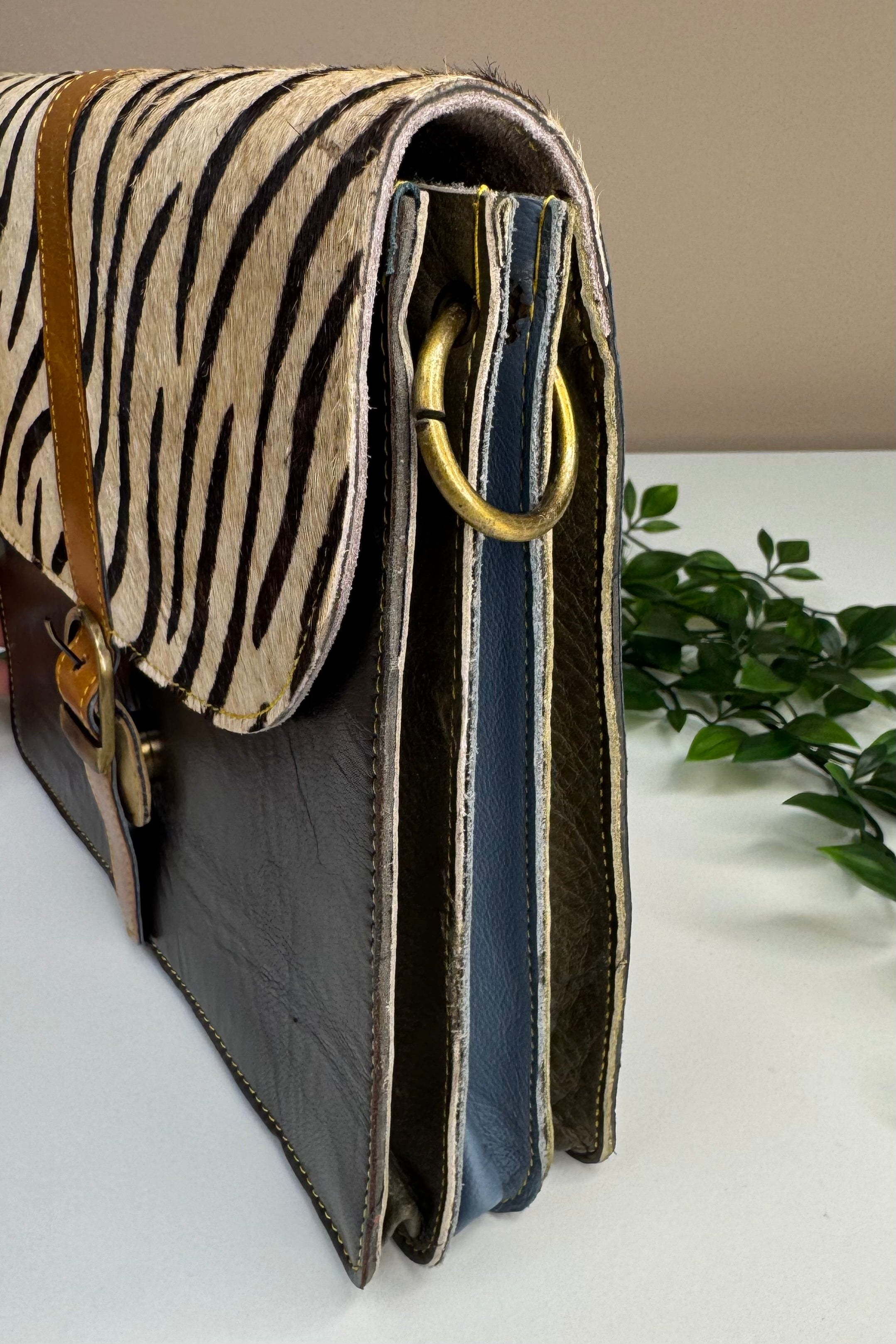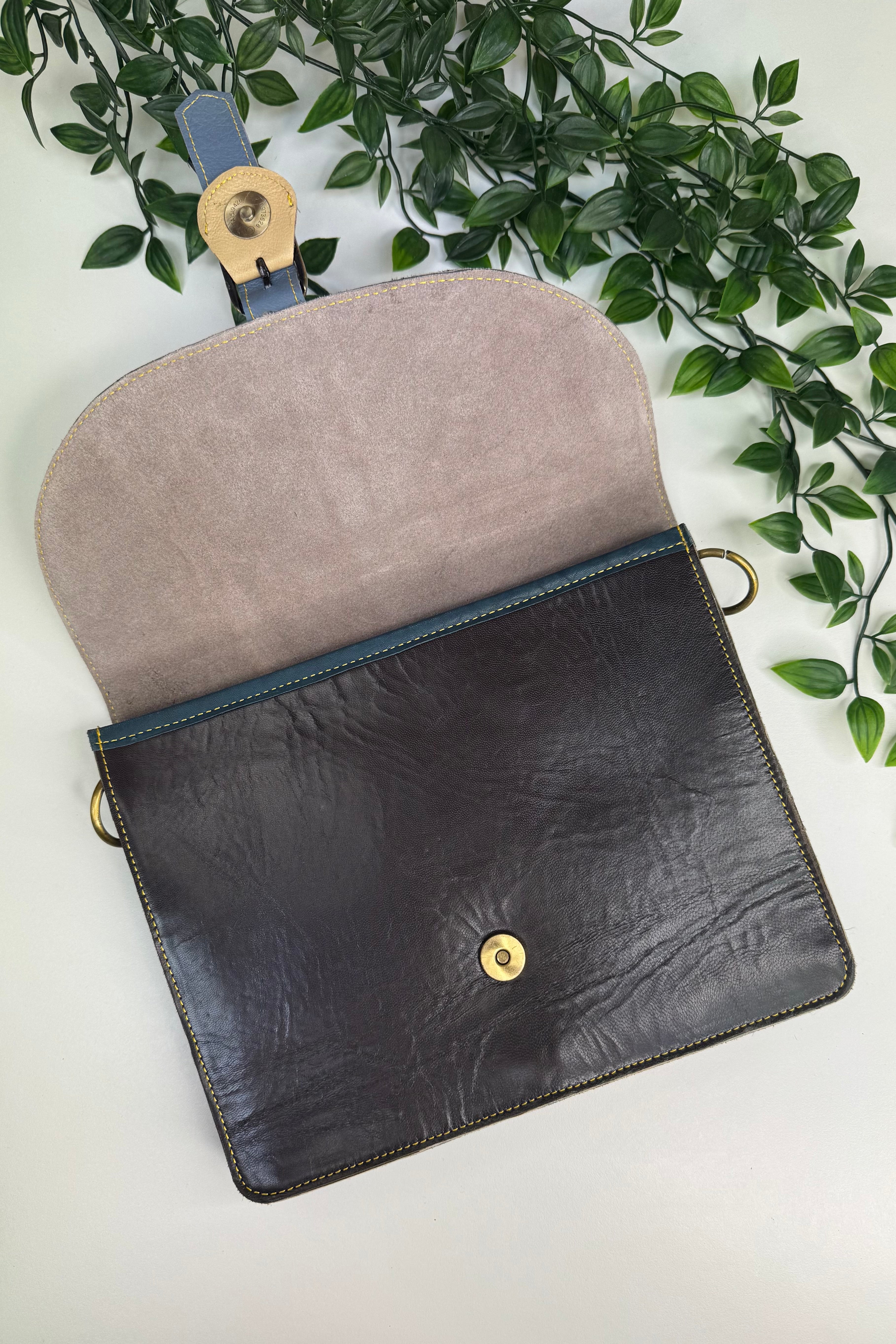 Made from recycled leather, each bag has its own unique natural marks that add charm and blend beautifully with the bright colours over time.
